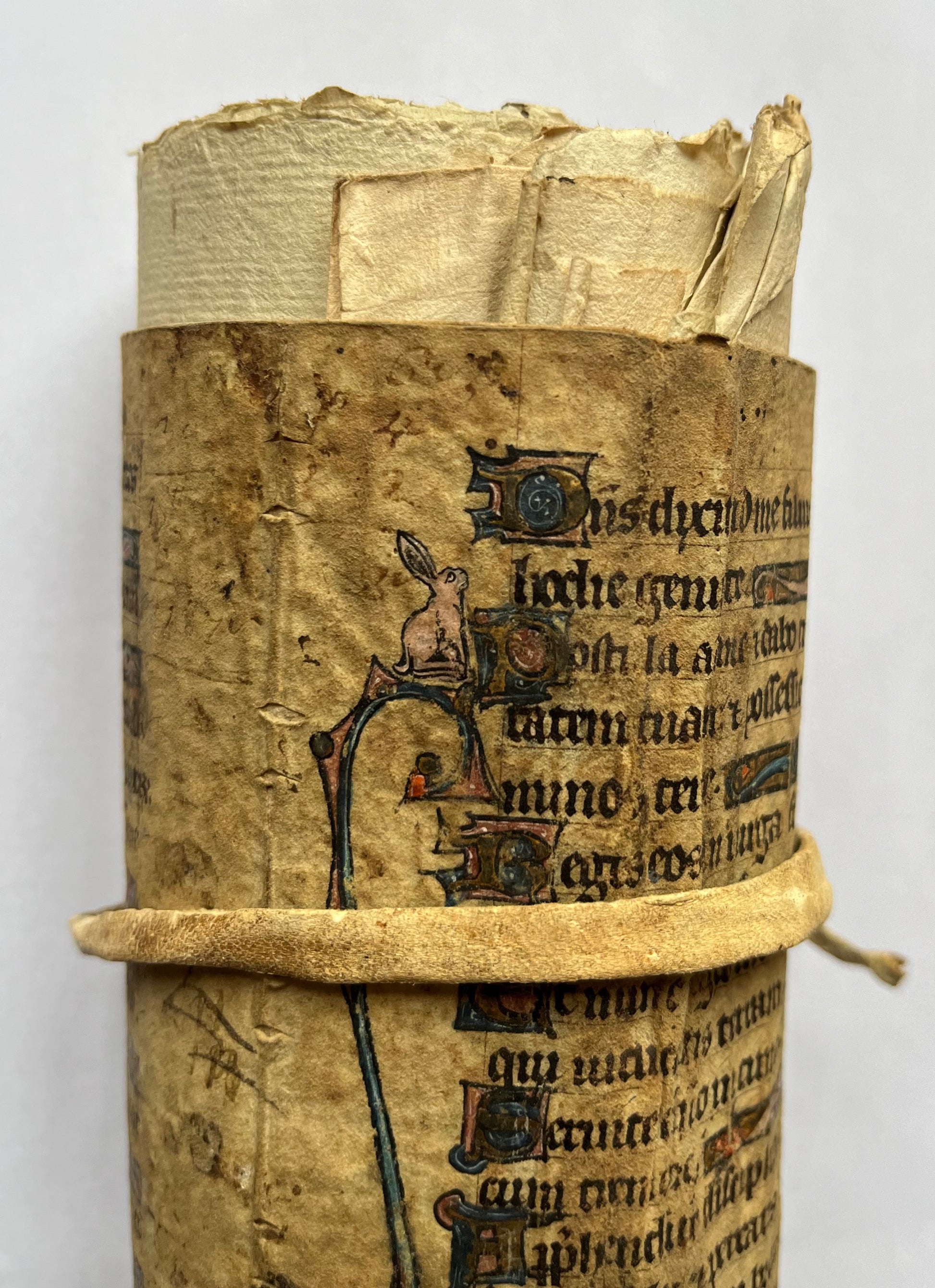 13th Century Psalter leaf with Rabbit - reused to hold nunnery records