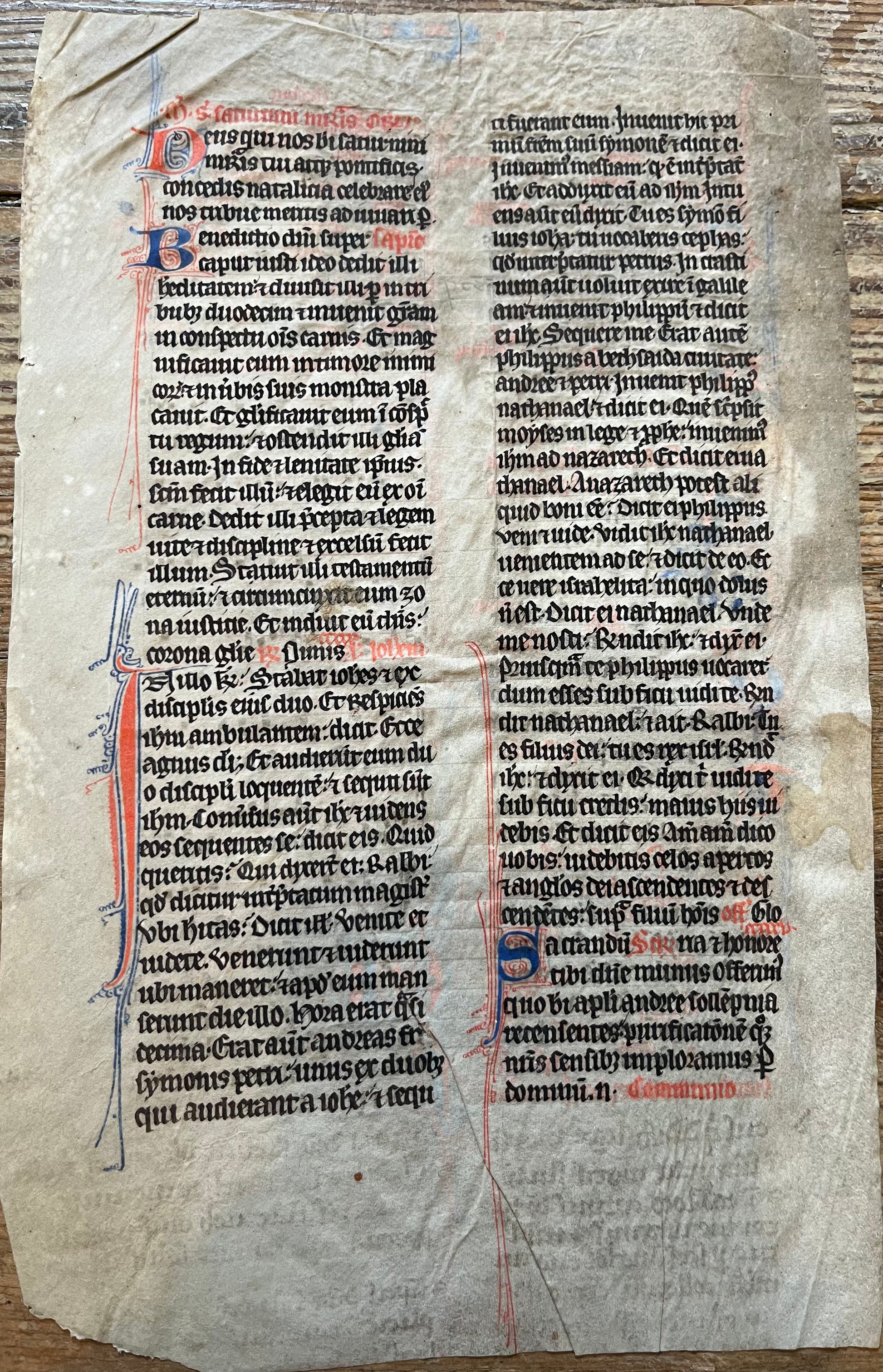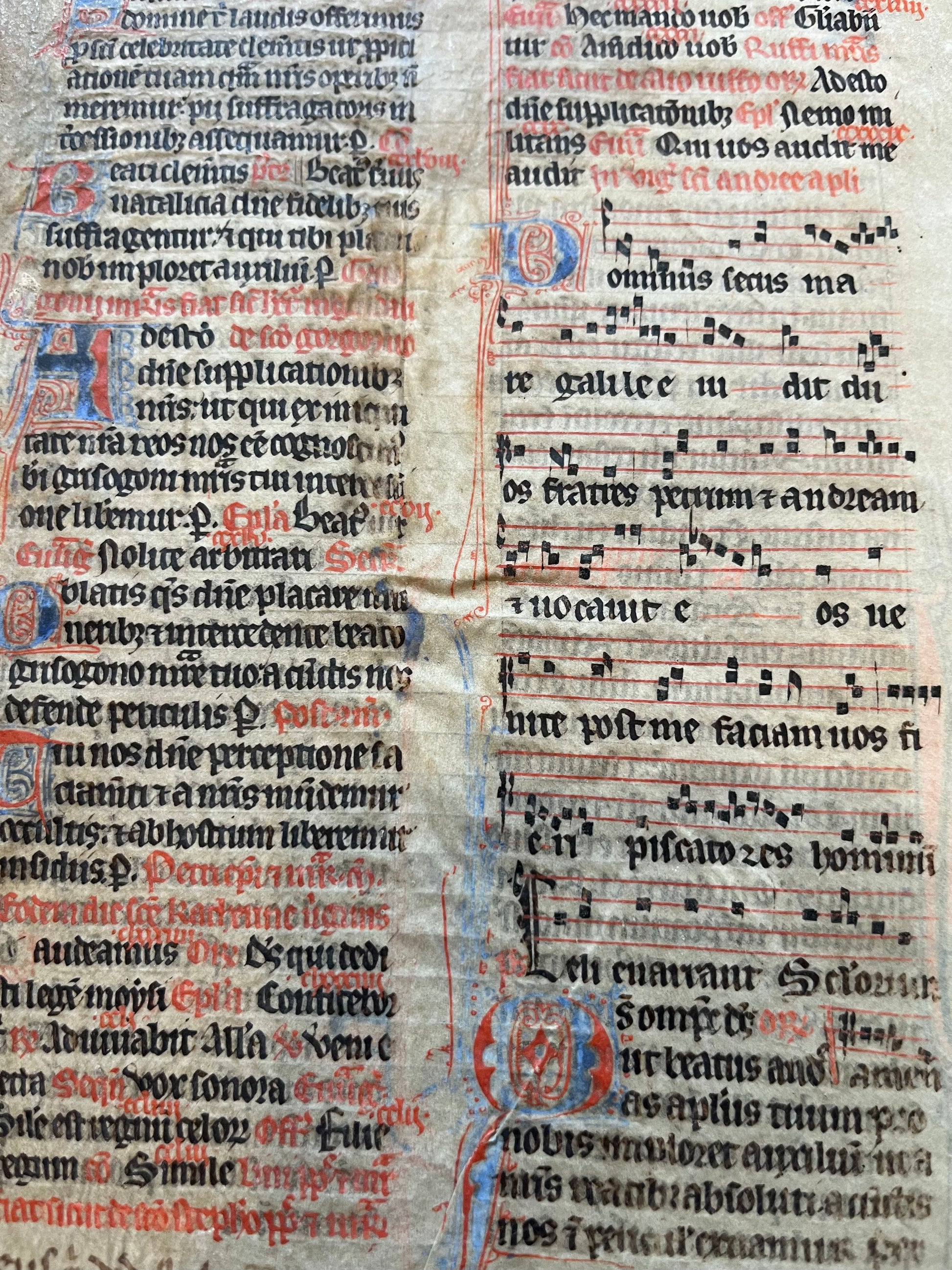 c1300 Century Leaf from a Breviary - Lombard initials and Gregorian Chant for St Andrew the Apostle.