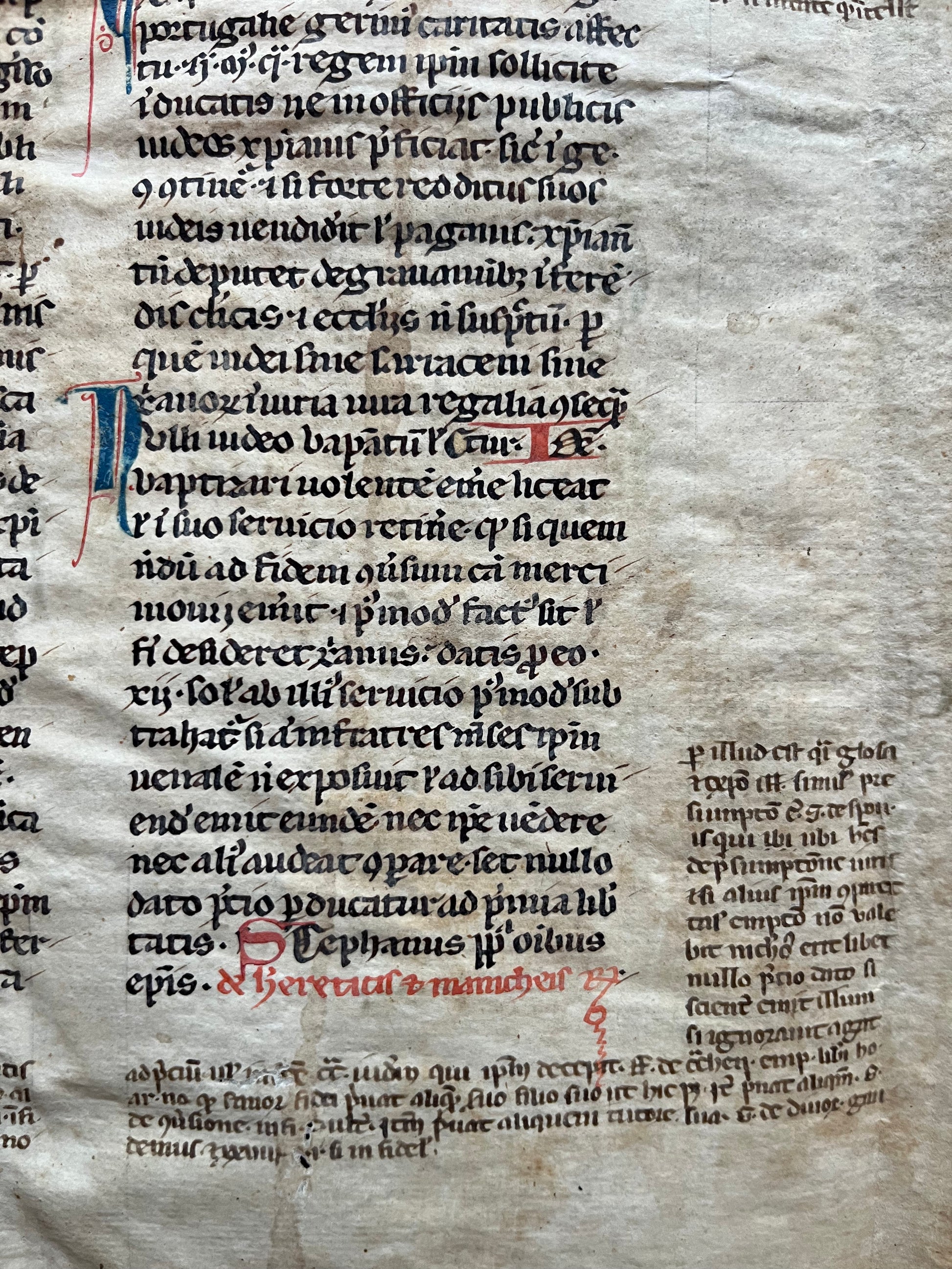 Here's a large binding waste fragment from c1300 which is an extract from the Decretals of Gregory IX - Church Law
