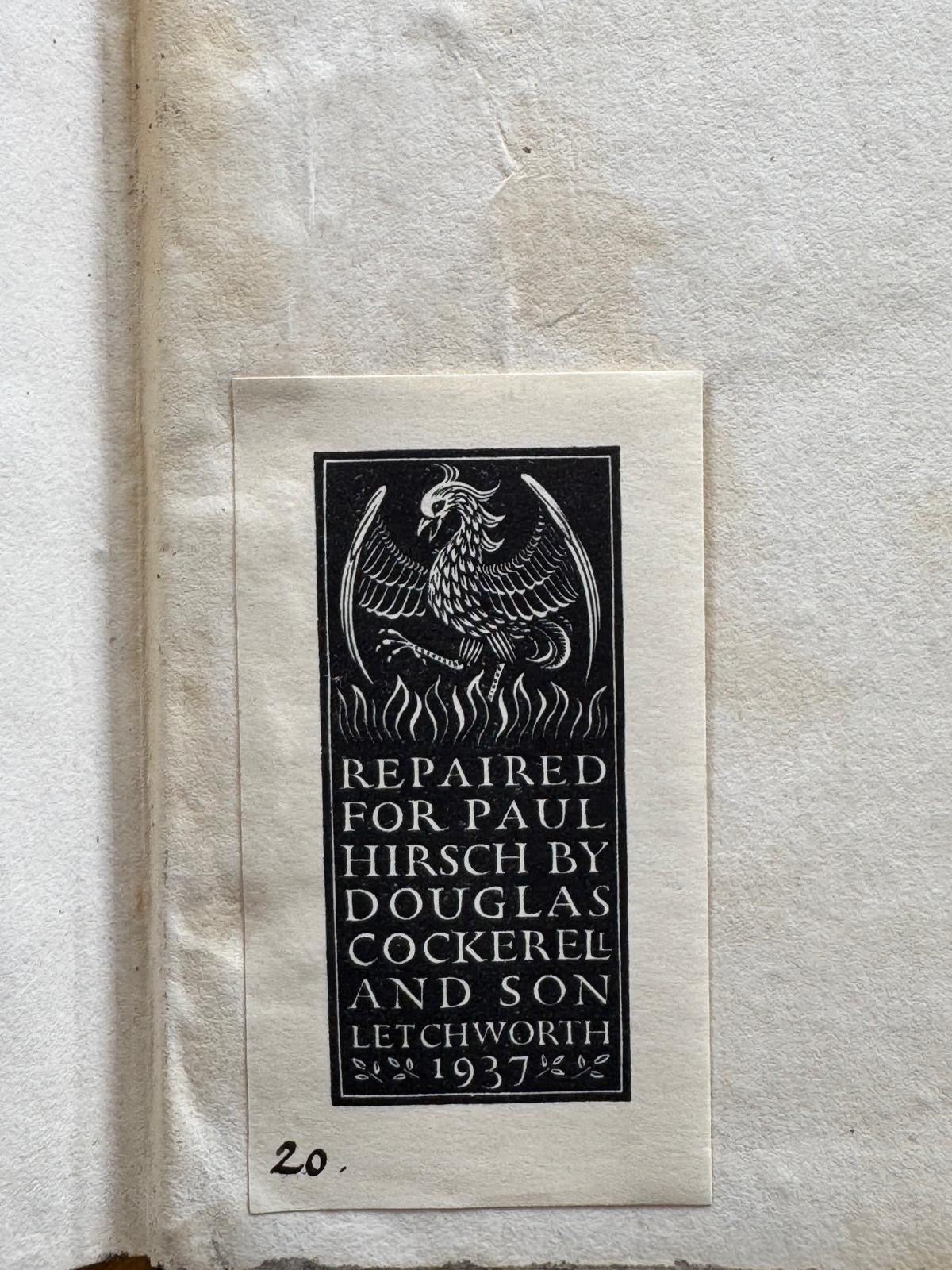 Complete text 212pp – in contemporary blind stamped binding, rebacked by Douglas Cockerell in 1937 (with ticket)