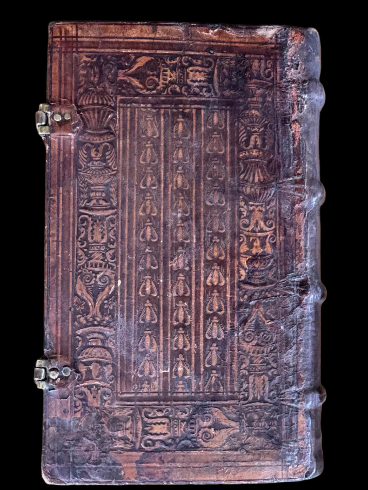 Binding: The binding is a contemporary continental binding – possibly Italian – decorated by a blind-stamped floral border with 30 bees in the central panel. I have seen one other similar binding in an Italian private collection also containing a humanist tract (Pausania by Stephanus Niger - 1517).