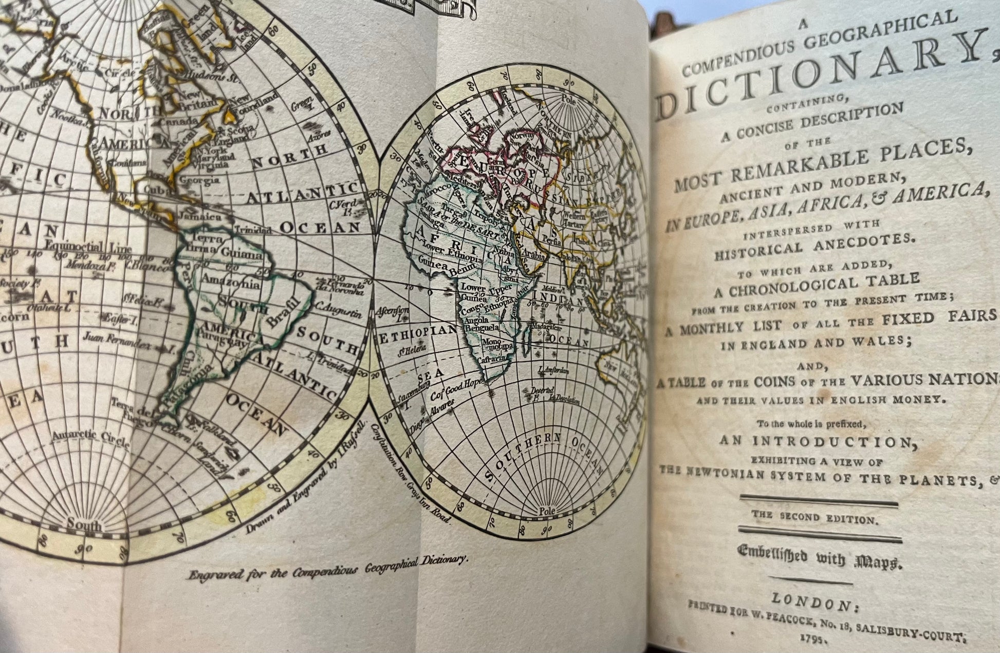 2nd Edition, London, W. Peacock 1795. Including coloured maps of the World and 5 Continents