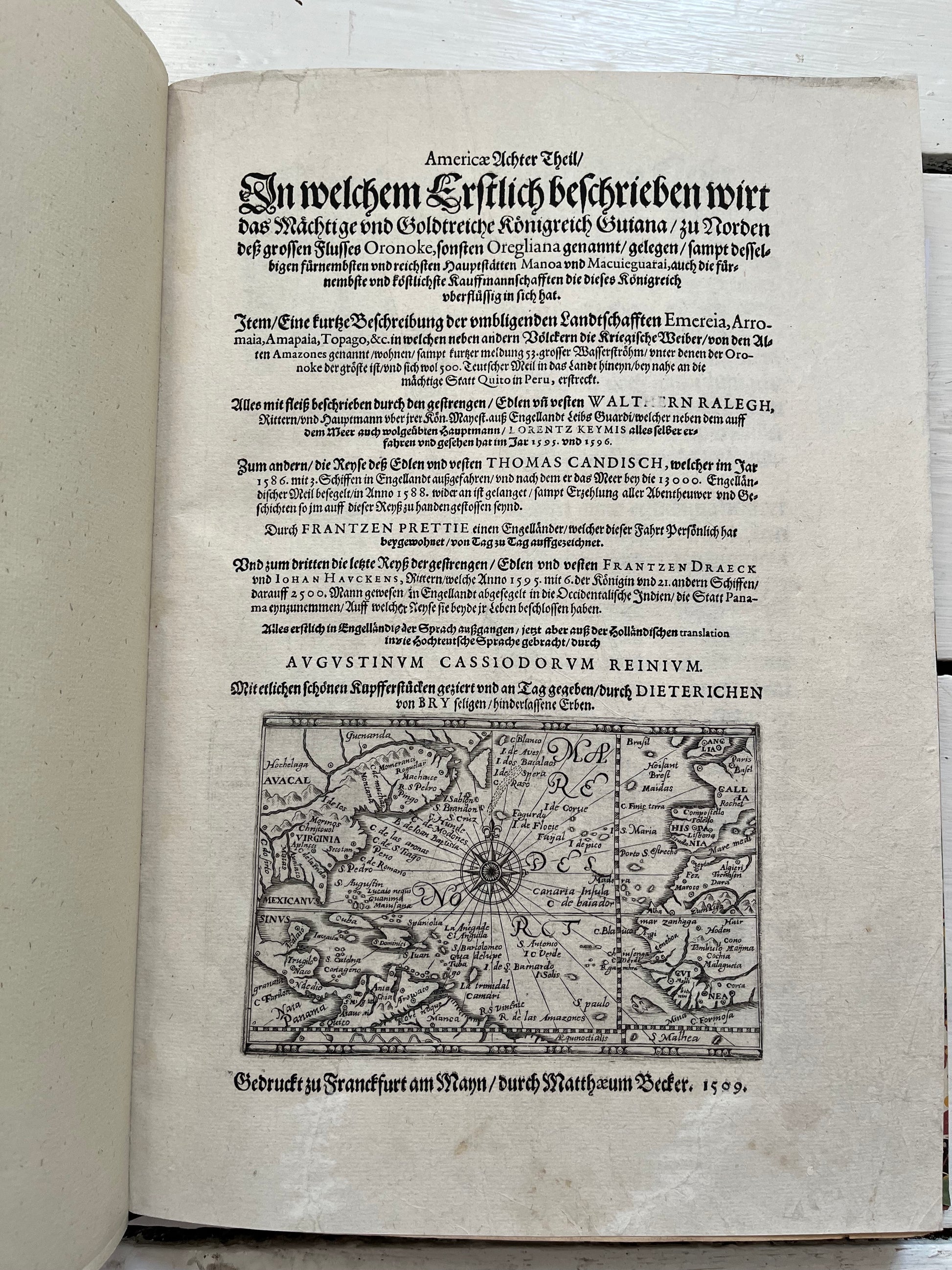 De Bry - Walter Raleigh - Search for Eldorado - 1599 - "Americæ Achter Theil. In welchem erstlich beschrieben wirt das Mächtige vnd Goldtreiche Königreich Guiana."