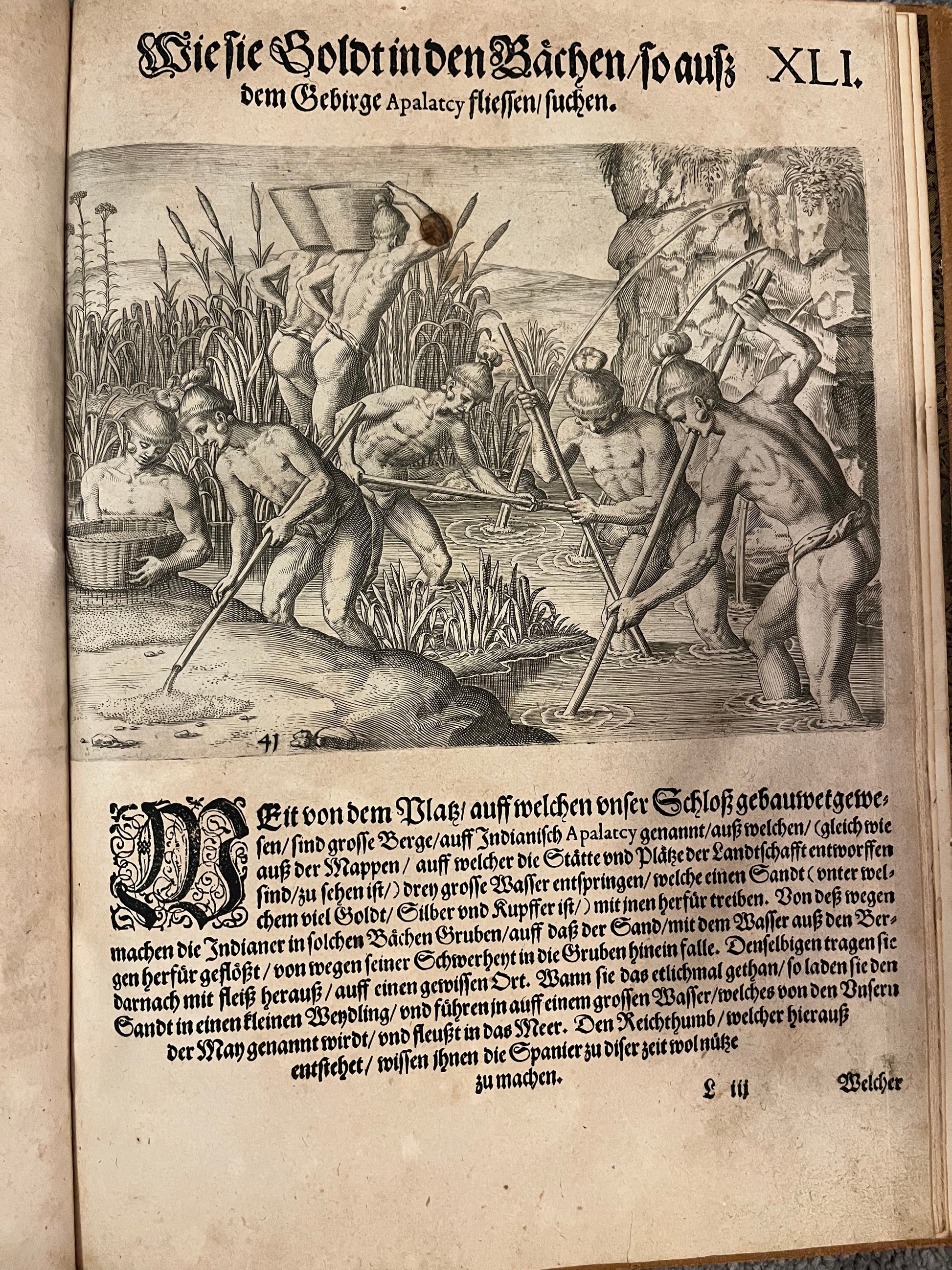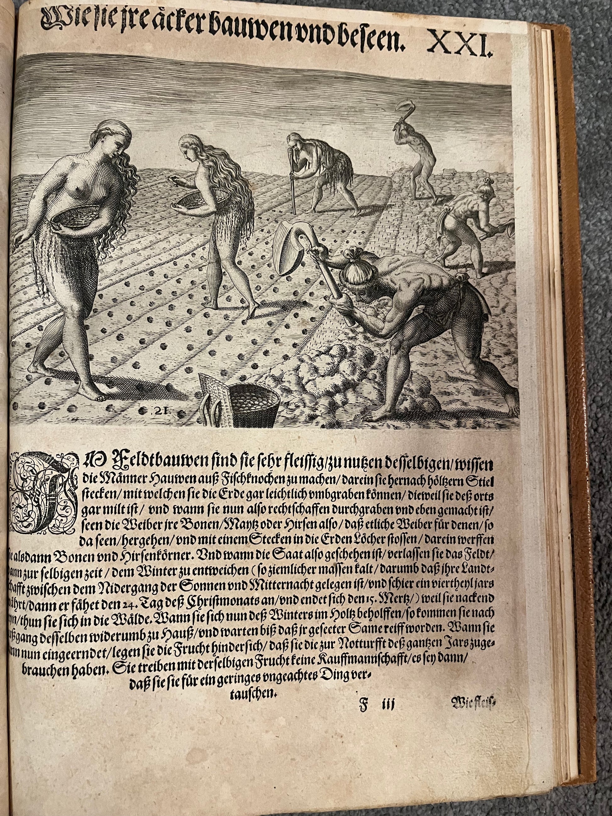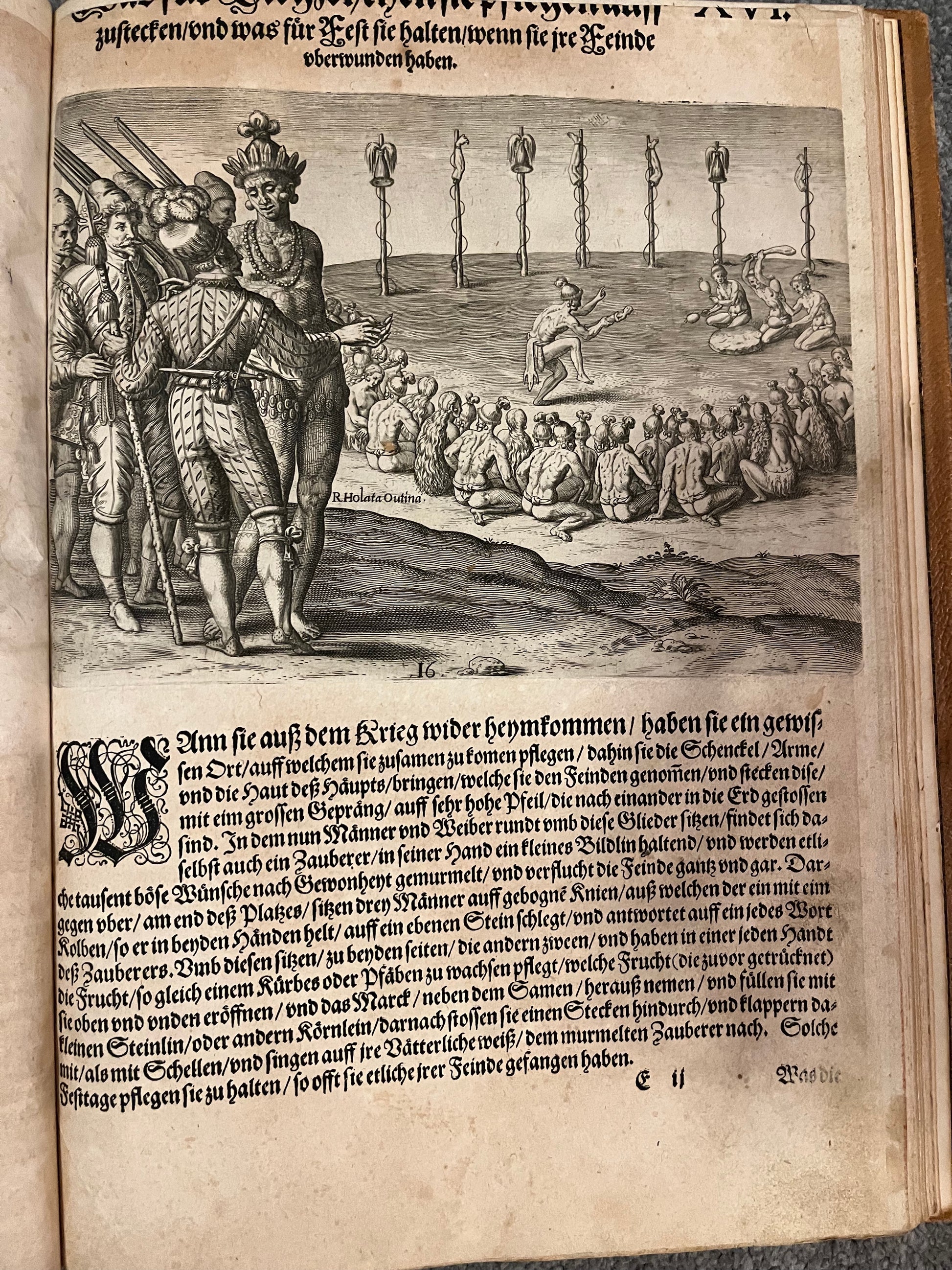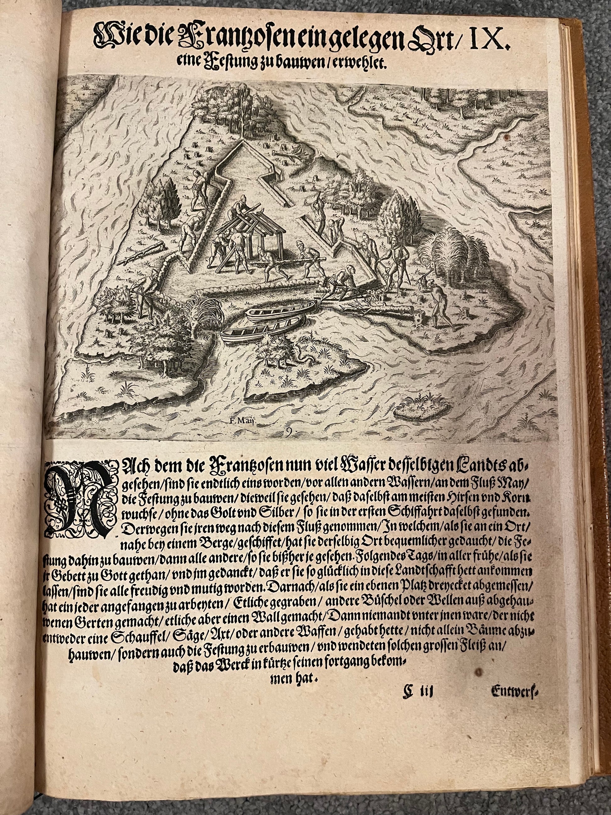 “DER ANDER THEYL/ der Newlich erfundenen Landt- schafft Americae, Von dreyen Schiffahrten/ so die Frantzosen in Floridam (die gegen Nidergang gelegen) gethan. Eine vnter dem Hauptmann H. Laudonniere, Anno 1564. Die ander vnter H. Ribald 1565. Die dritte/ vnter H. Guorguesio 1567. ges- chehen. Francofortiad Moenvm Typis Ioanis Wecheli, Stantibus vero Theodori de Bry Anno MDXCI. Venales reperiutur in officina Sigismundi Feirabedii”