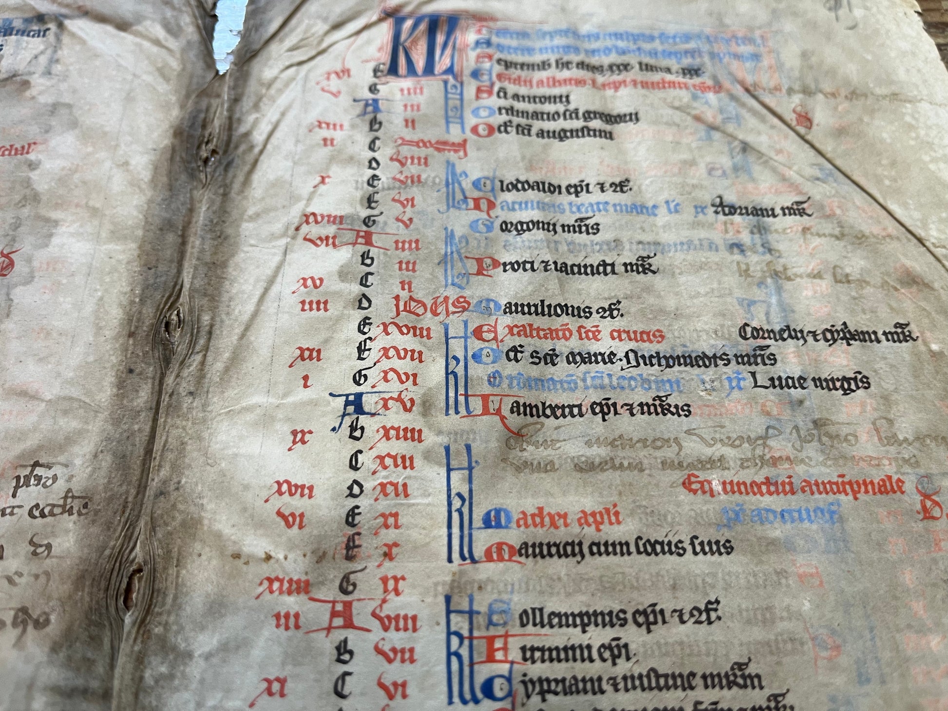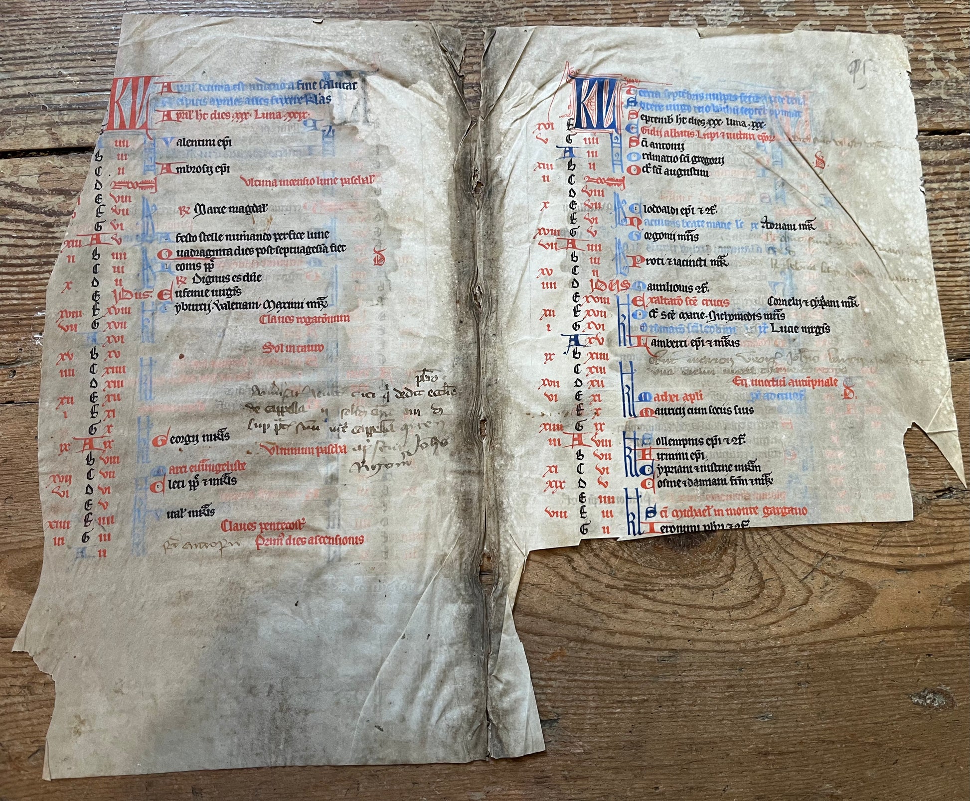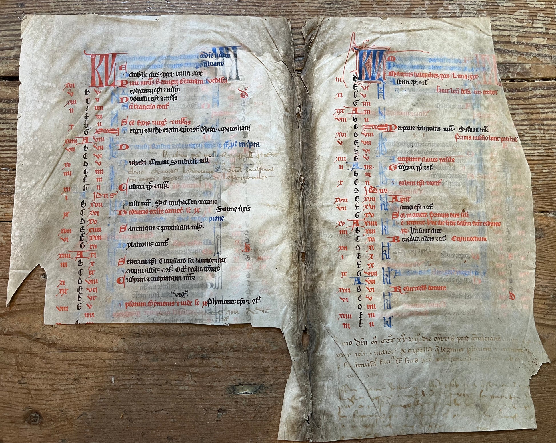 c1300 Missal Calendar bifolium for the Four months of March/April & September/October - Likely French/Parisian