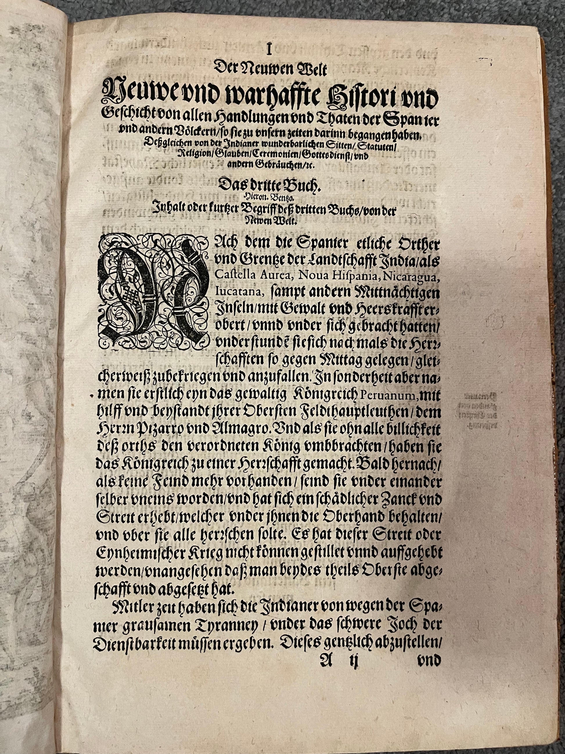 "Das sechste Theil Americae oder Der Historien Hieron. Benzo das dritte Buch. Darinnen erzehlet wirt, wie die Spanier die..."
