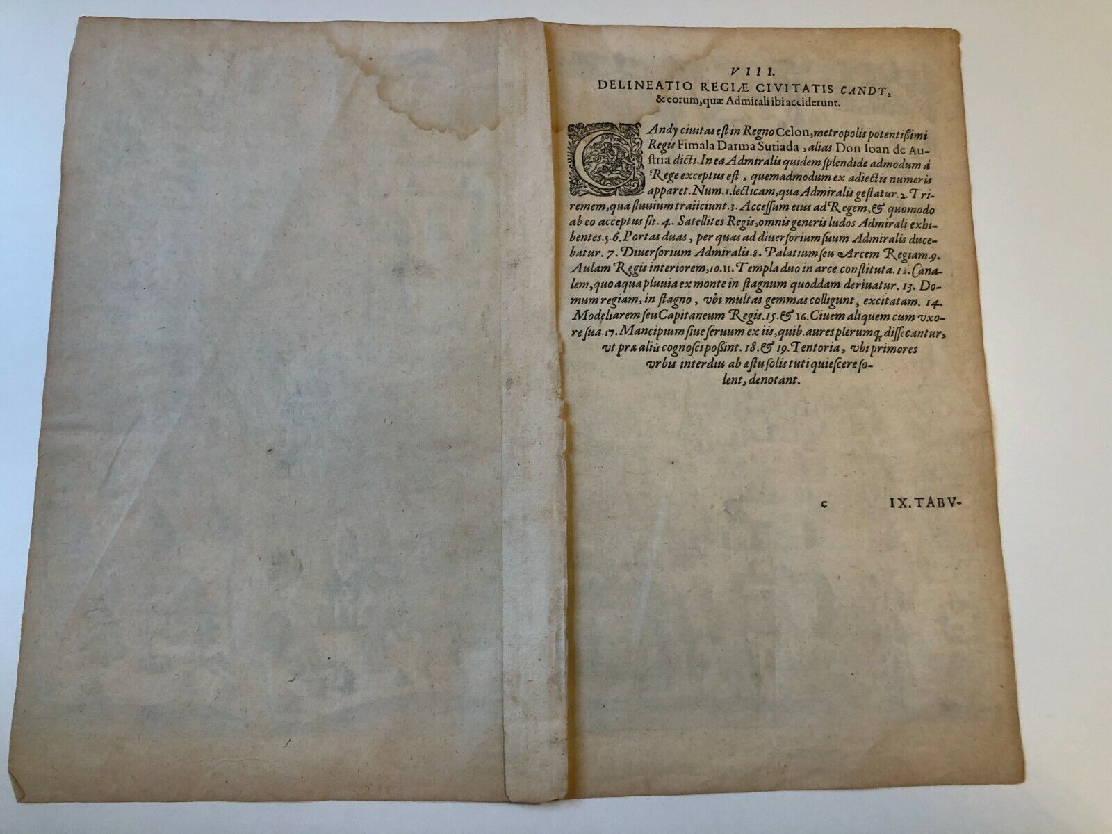 De Bry - "A Description of the Royal town of Kandy"- Original - 1605 - Sri Lanka