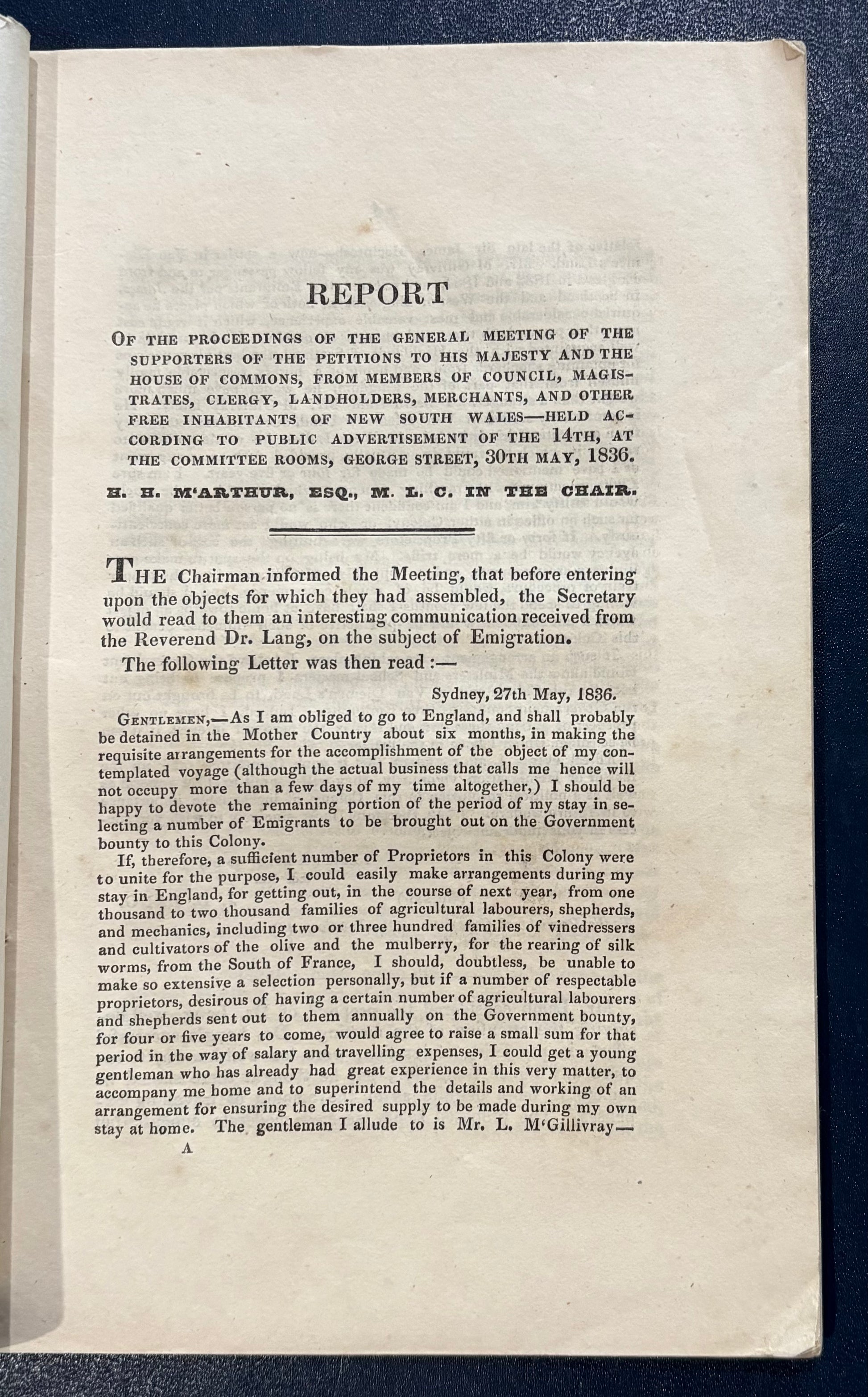 Early Australian Printing - "Exclusives" Anti Bourke reform pamphlet - Support for continued convict transportation - "Report of the proceedings of the general meeting" - Sydney - 1836