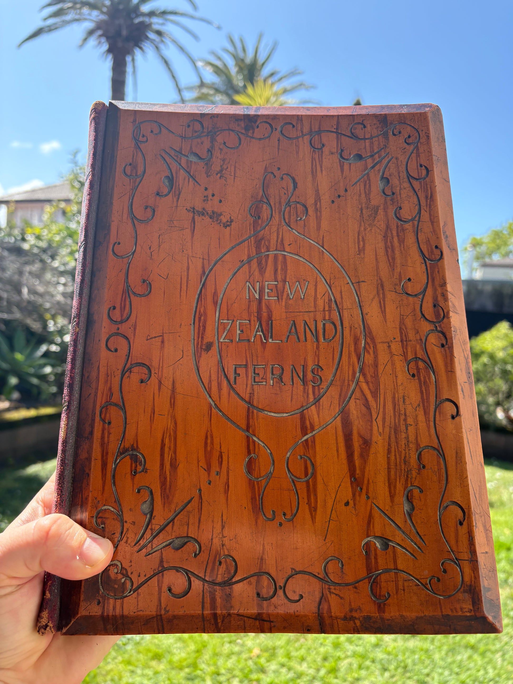 -Beautiful contemporary Kauri boards with original leather spine.