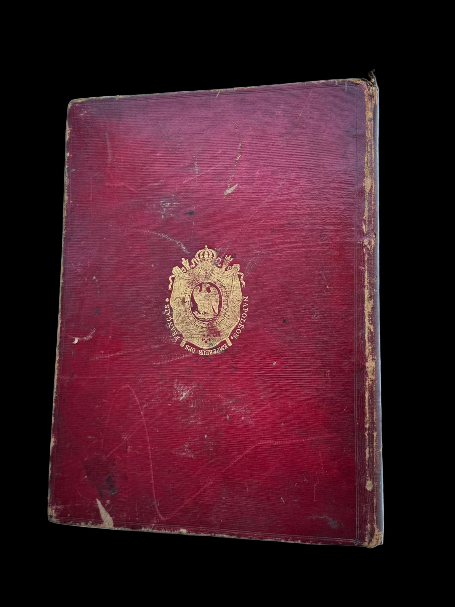 The handsome binding can be identified by the golden armorial crest of Napoleon I on the boards. This supralibros was in use between c1805-1807 and is described in the definitive records of his bindings (Olivier 2652 - fer 7)