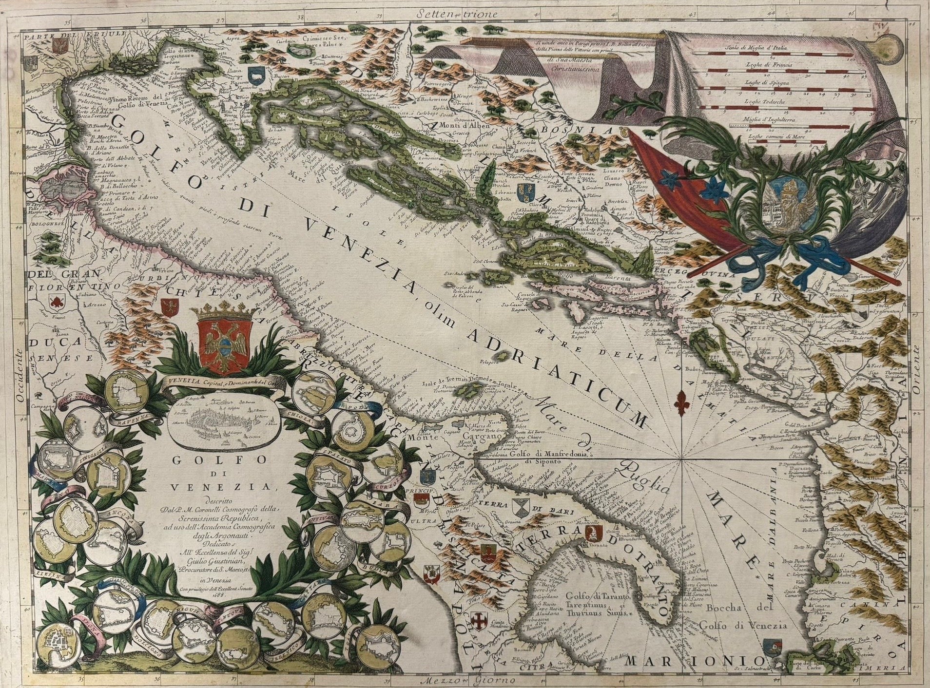 “Golfo de Venezia” - Vincenzo Coronelli (1650 – 1718) - Atlante Veneto published in Venice c1690
