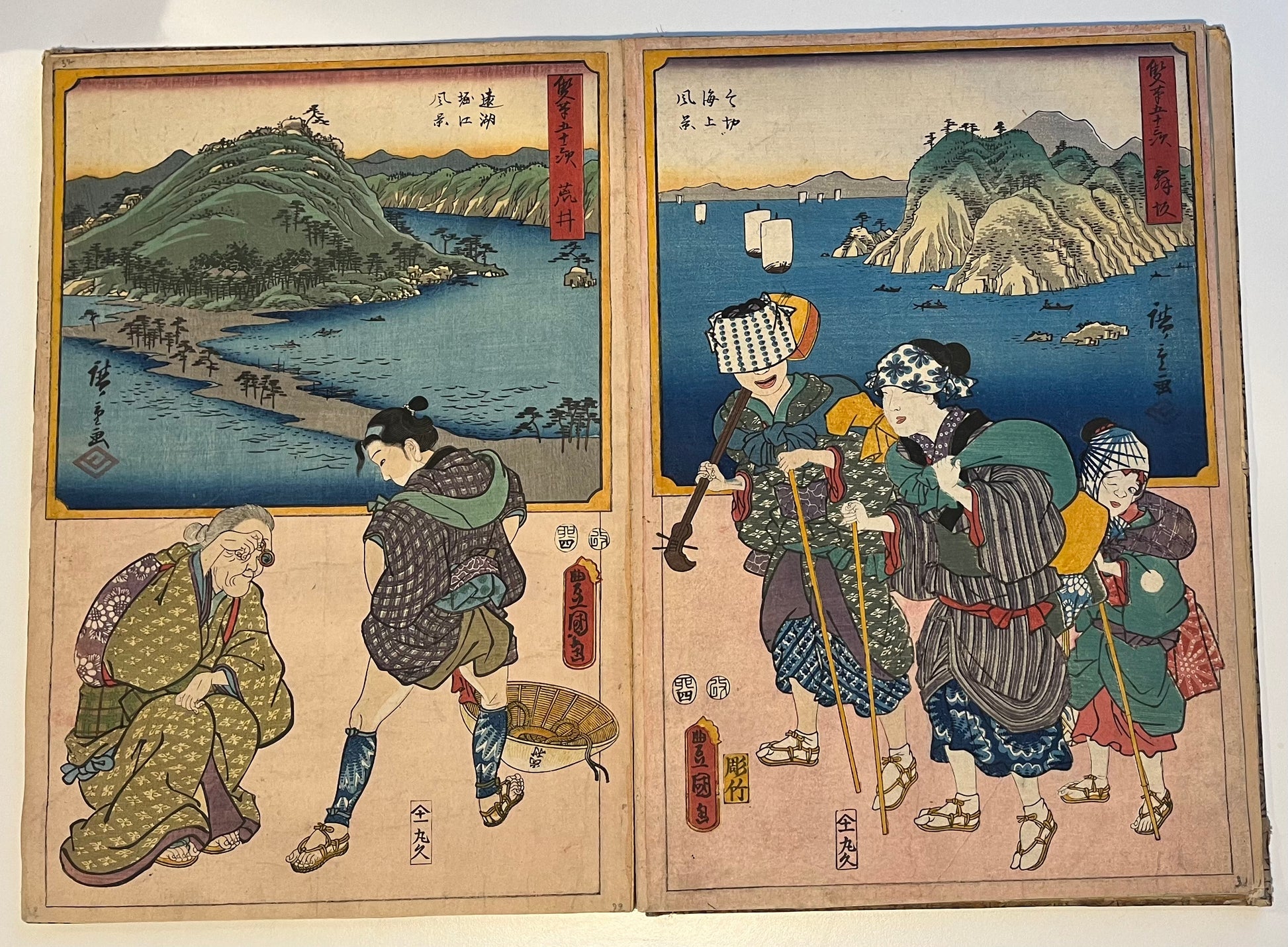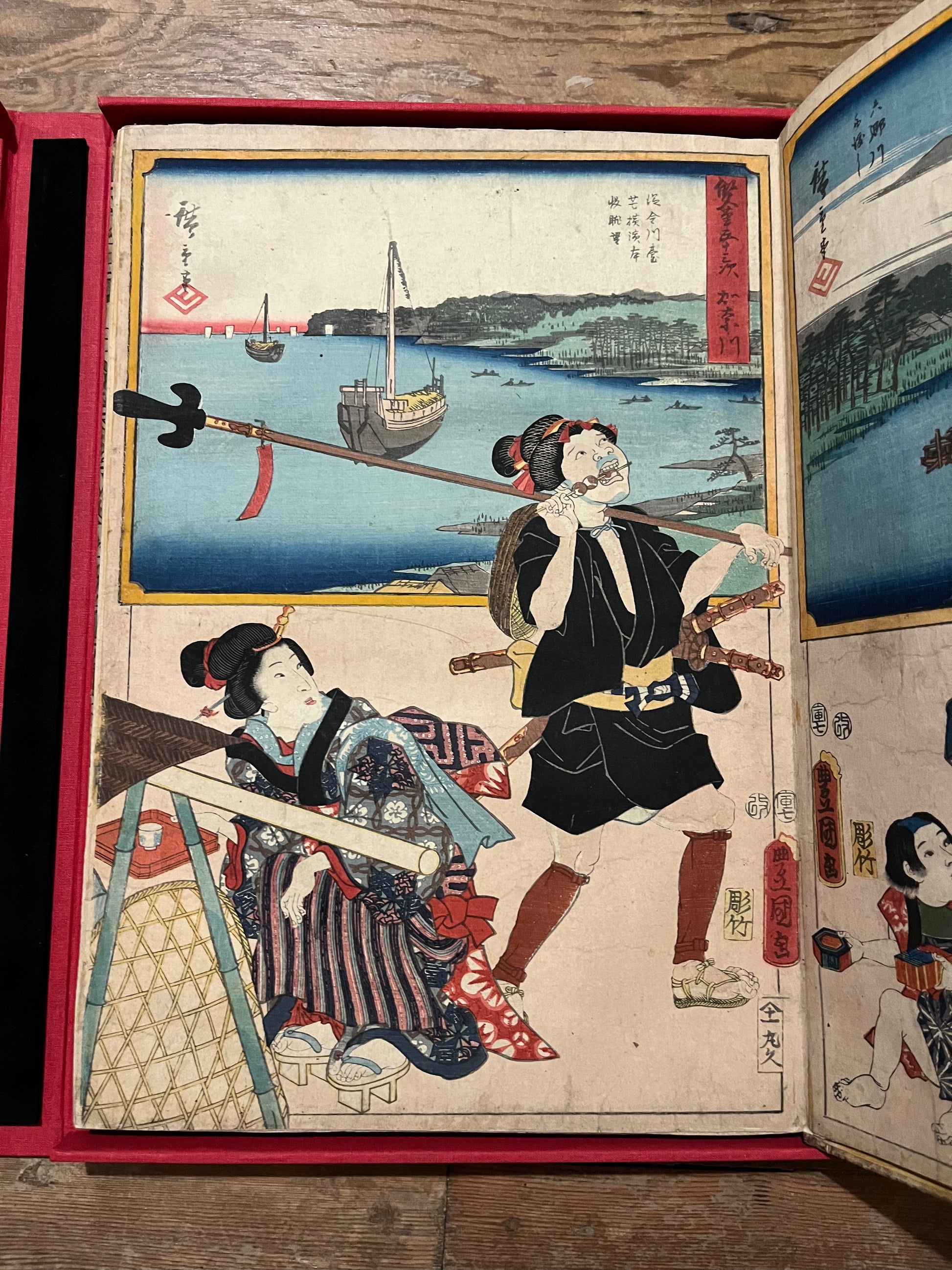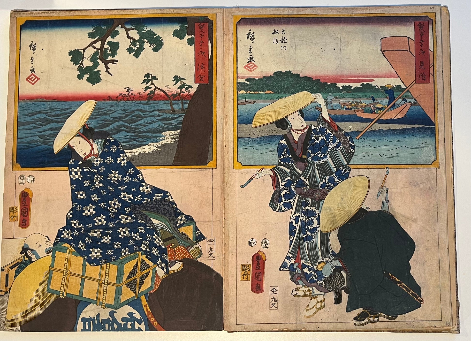 Hiroshige & Kunisada - Complete album of 55 prints - "Two Brushes" 53 stations of the Tokaido road - 1854-7 publisher Maruya Kyūshirõ