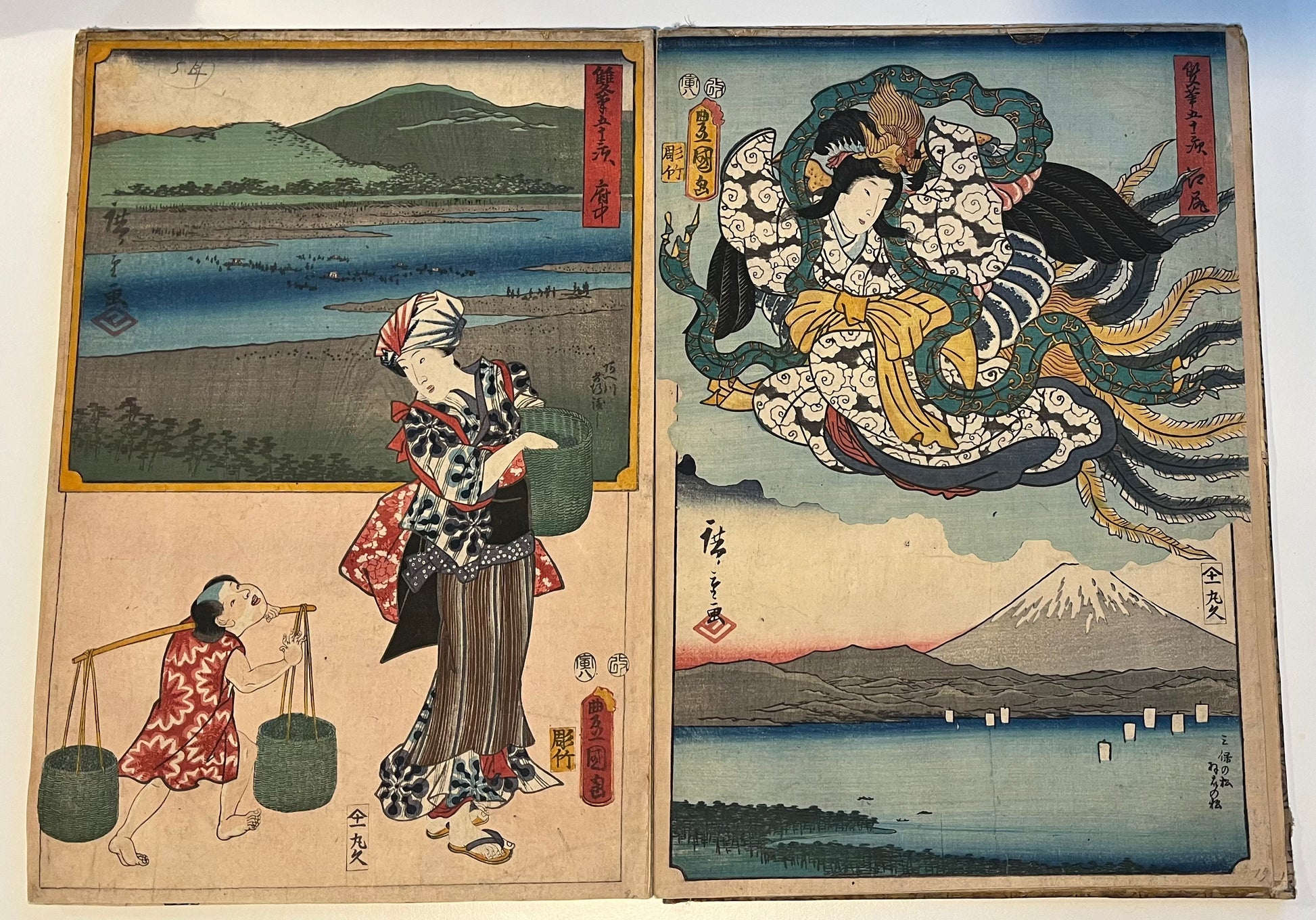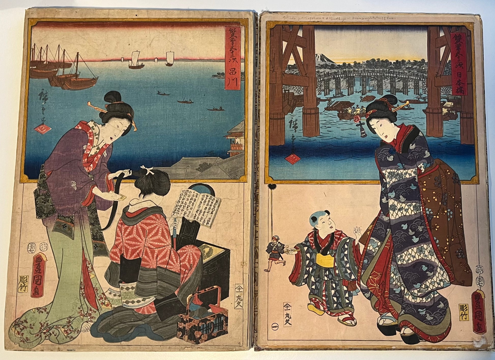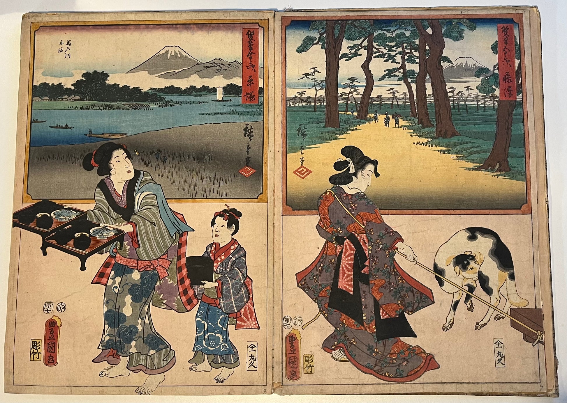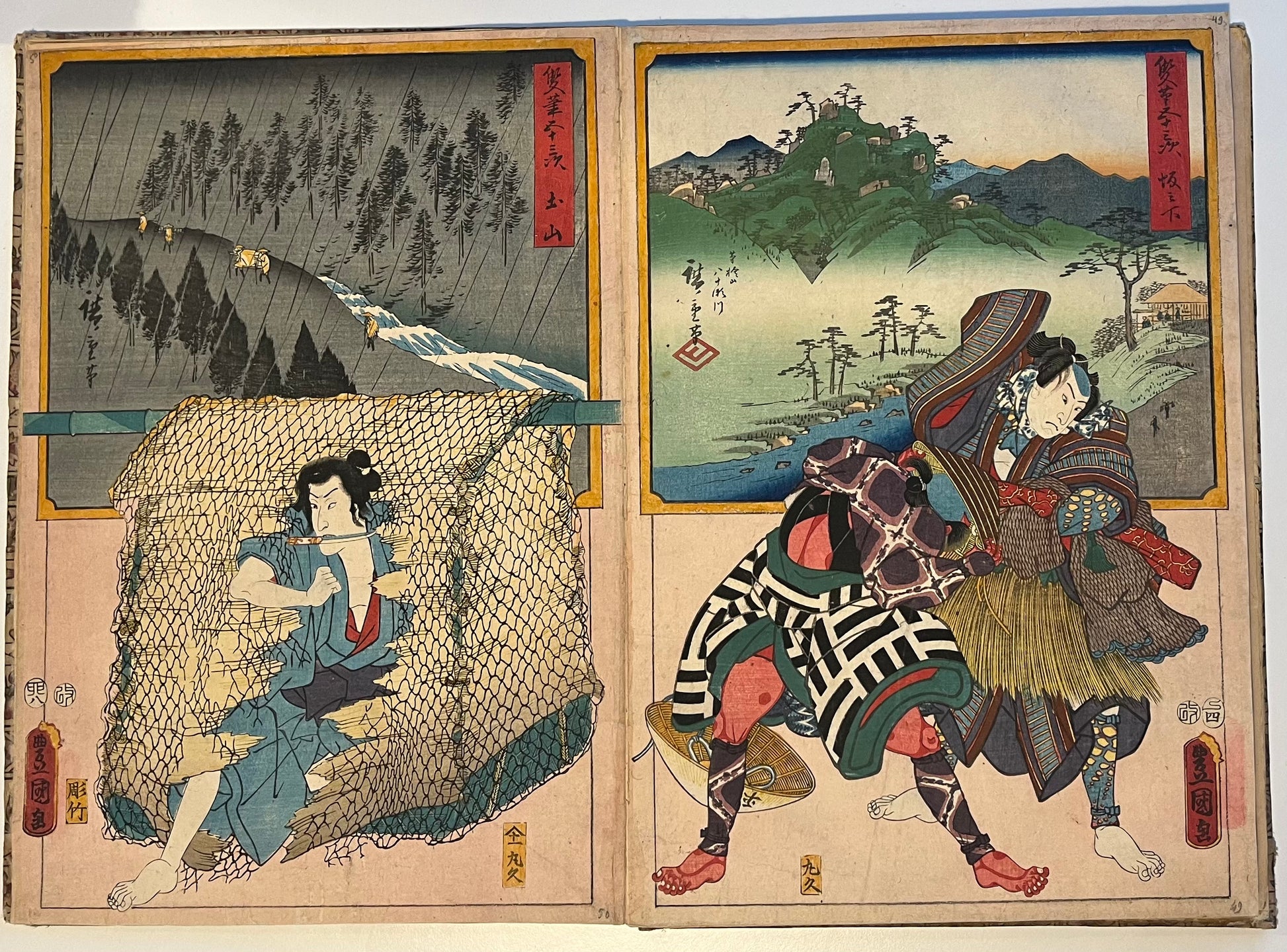 Hiroshige & Kunisada - Complete album of 55 prints - "Two Brushes" 53 stations of the Tokaido road - 1854-7 publisher Maruya Kyūshirõ