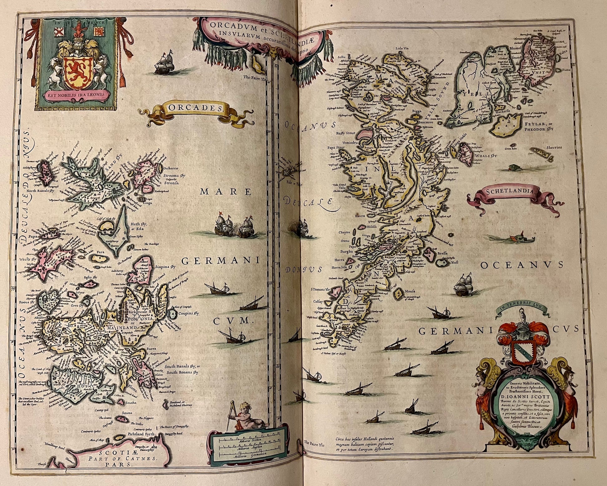 Blaeu's maps are finely engraved with beautiful decorative cartouches and embellishments to the maps. His maps are regarded as the height of Dutch engraving and book production of the Dutch Golden age. The Title page is particularly spectacular with unicorns proudly holding up the flags of Scotland next to the Scottish Lion rampant