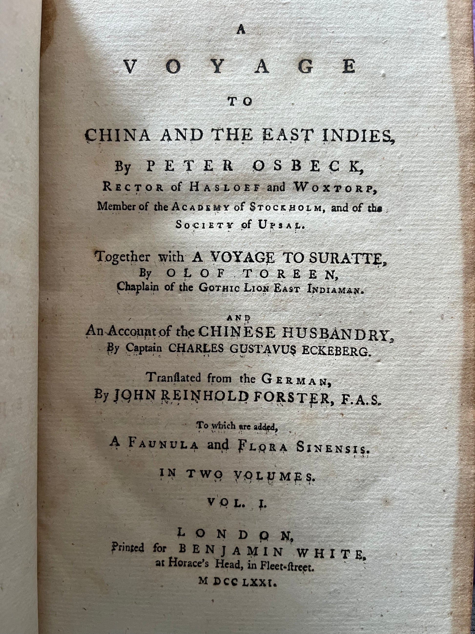 Peter Osbeck's "A Voyage to China and the East Indies"