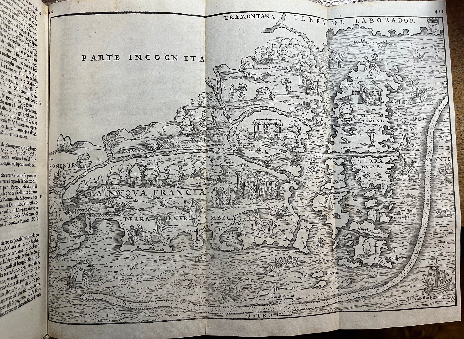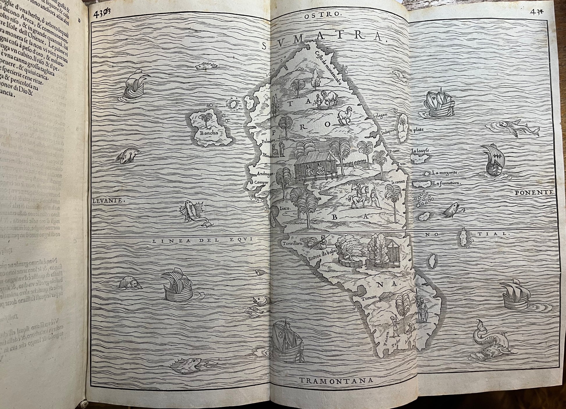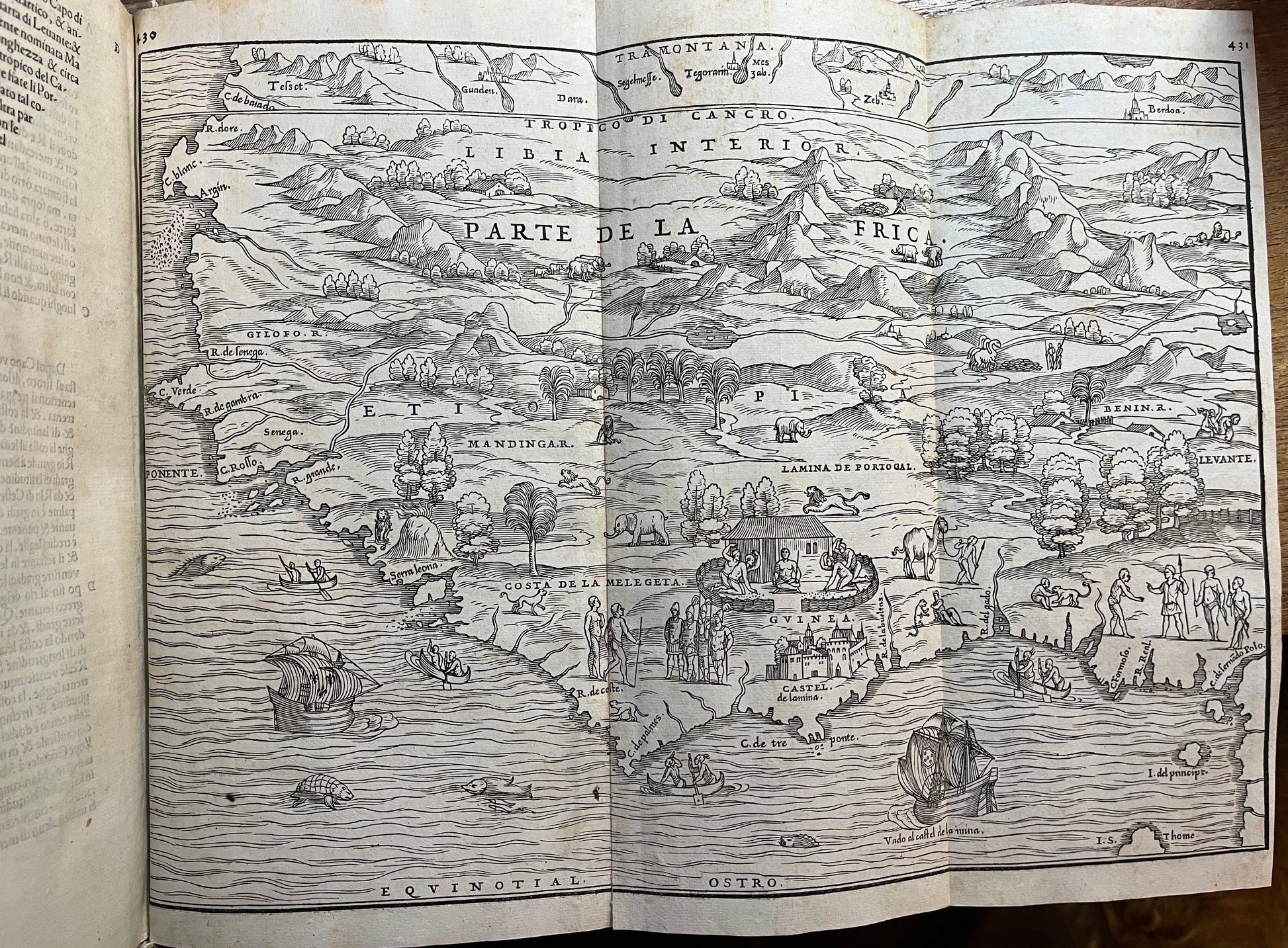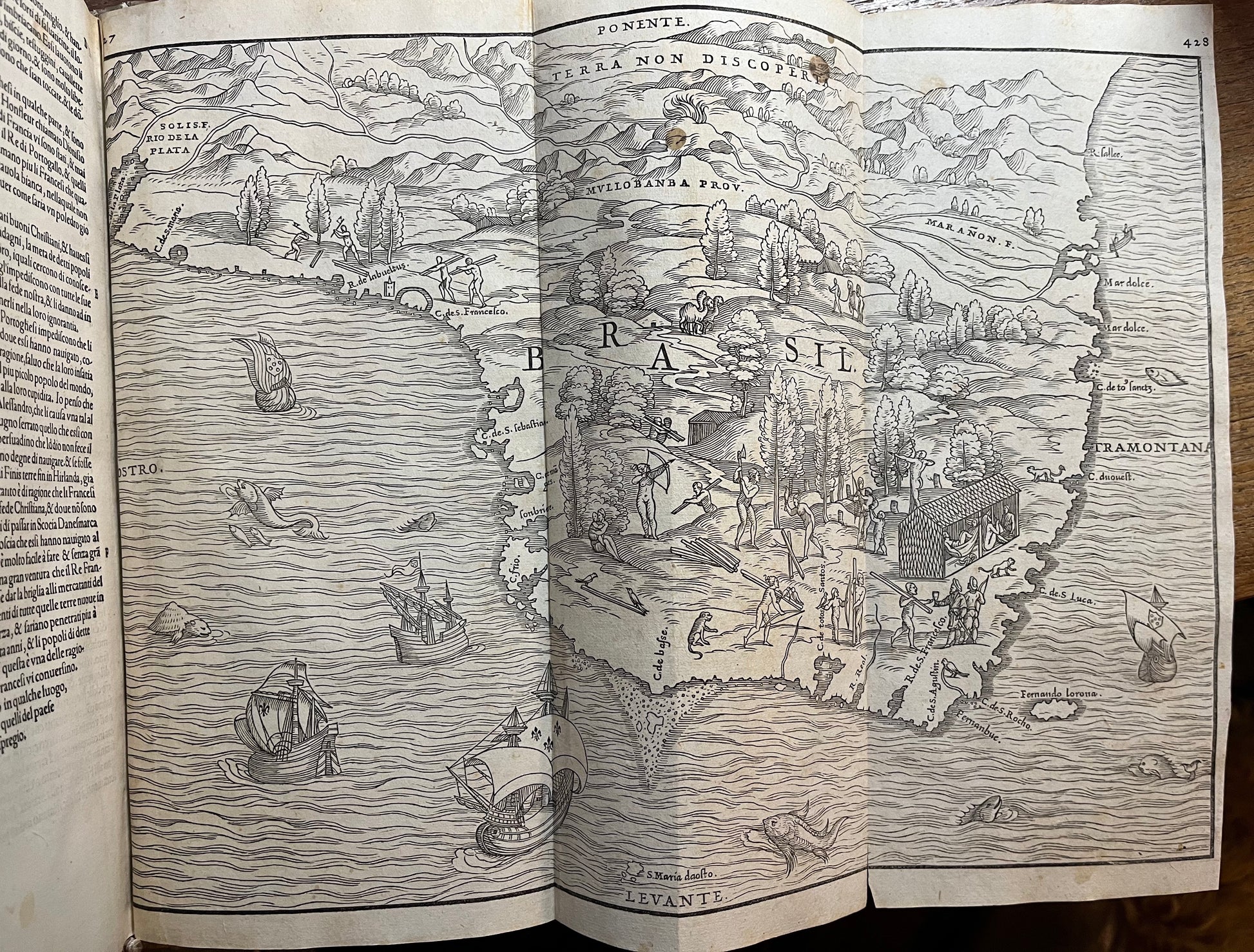 The maps included in the volumes are landmark maps produced by the geographer Gastaldi. The map of South East Asia is particularly important as it is one of the first to depict Japan - with an inaccurate coastline and named “Cympagu”- and the first to name the Philippines "filipina". The maps of the Americas and Africa in the third volume are here in the RARE 1st STATE from 1556. The woodblock of this state was destroyed in a fire in 1557 so all subsequent editions were created using different woodblocks.