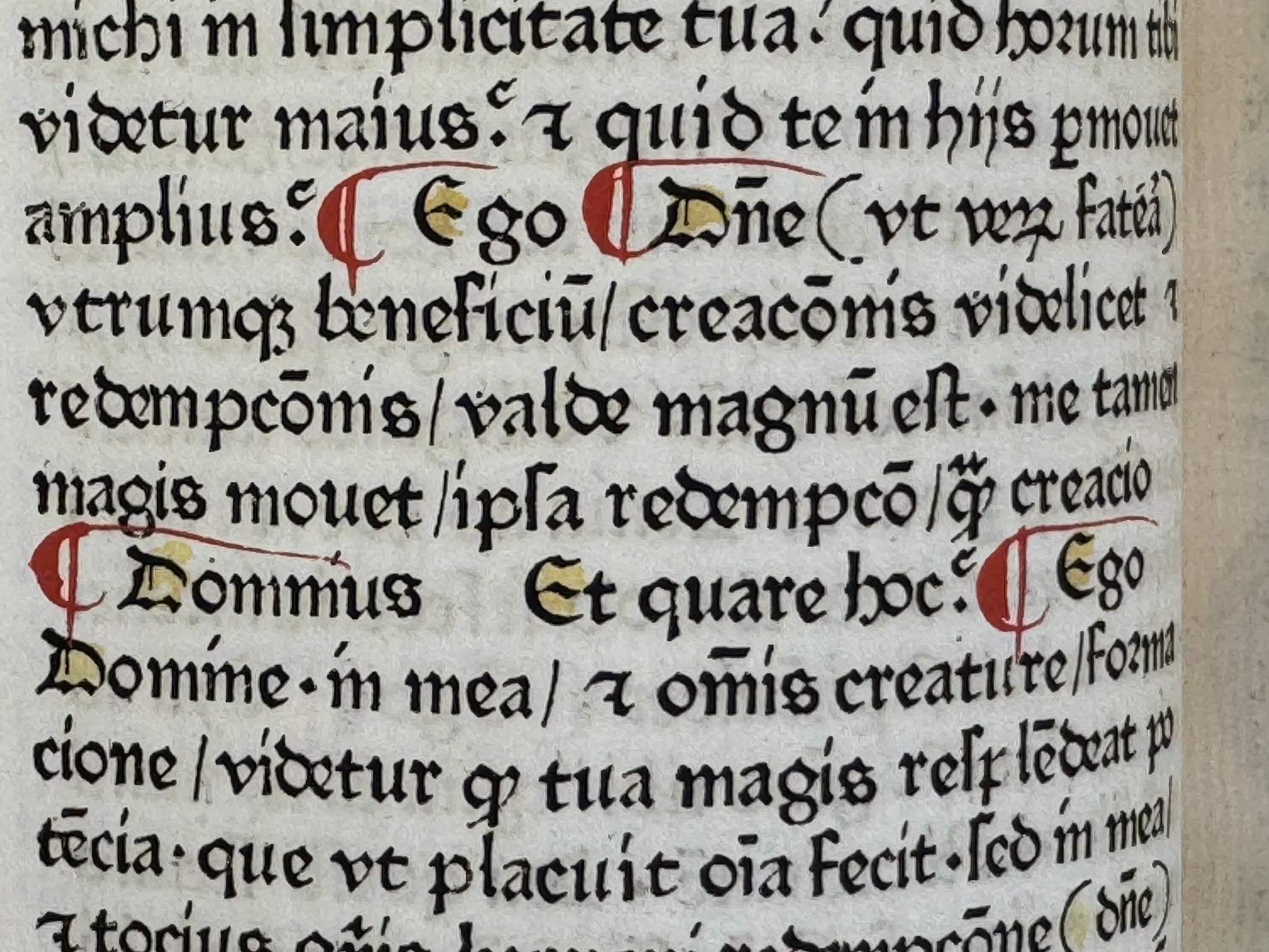 -Printed in Red and black ink. One contemporary hand coloured drop cap in blue, red and gold. Rubrication to text in red and yellow throughout.