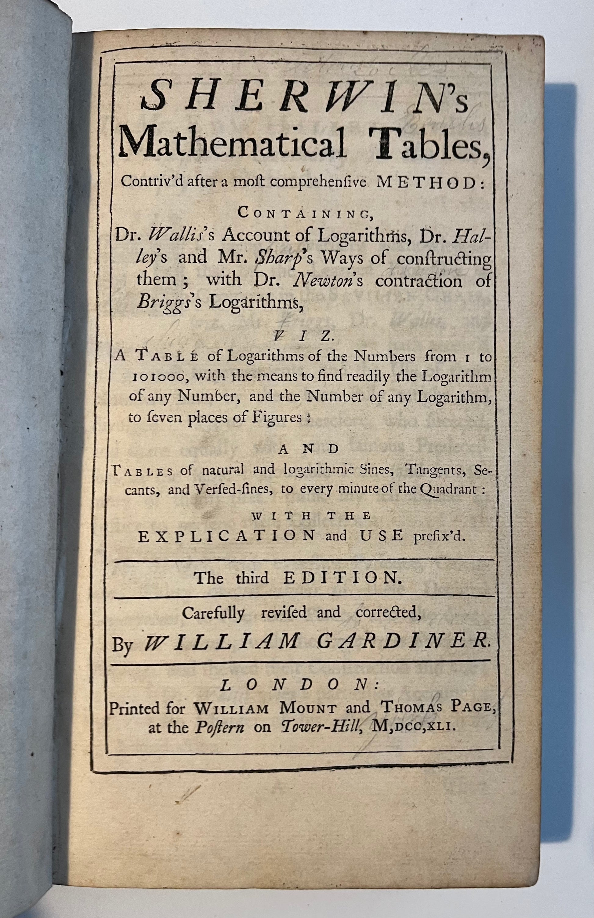Sherwin's Mathematical Tables - Mount and Page 1741 - Halley and Newton