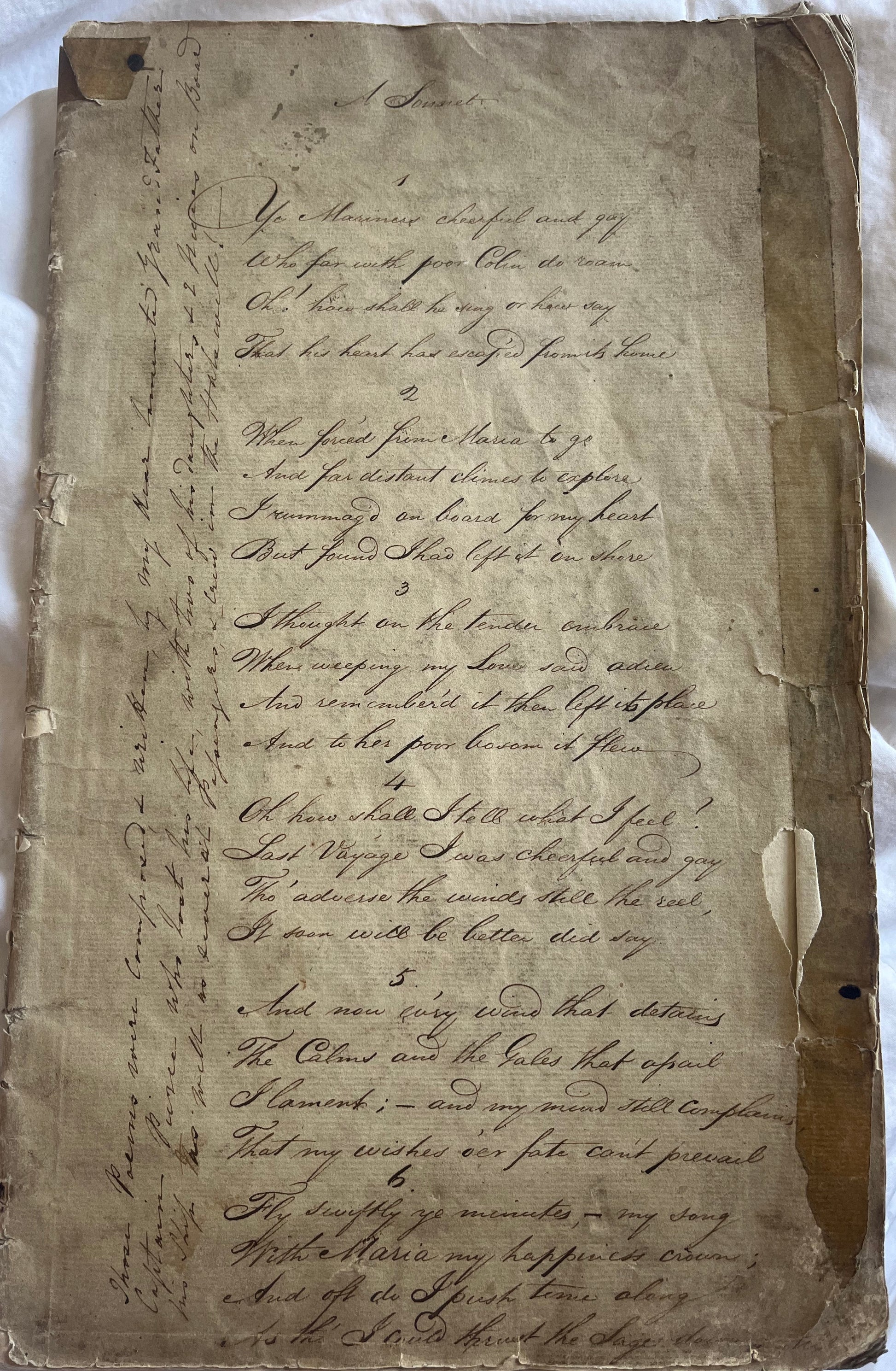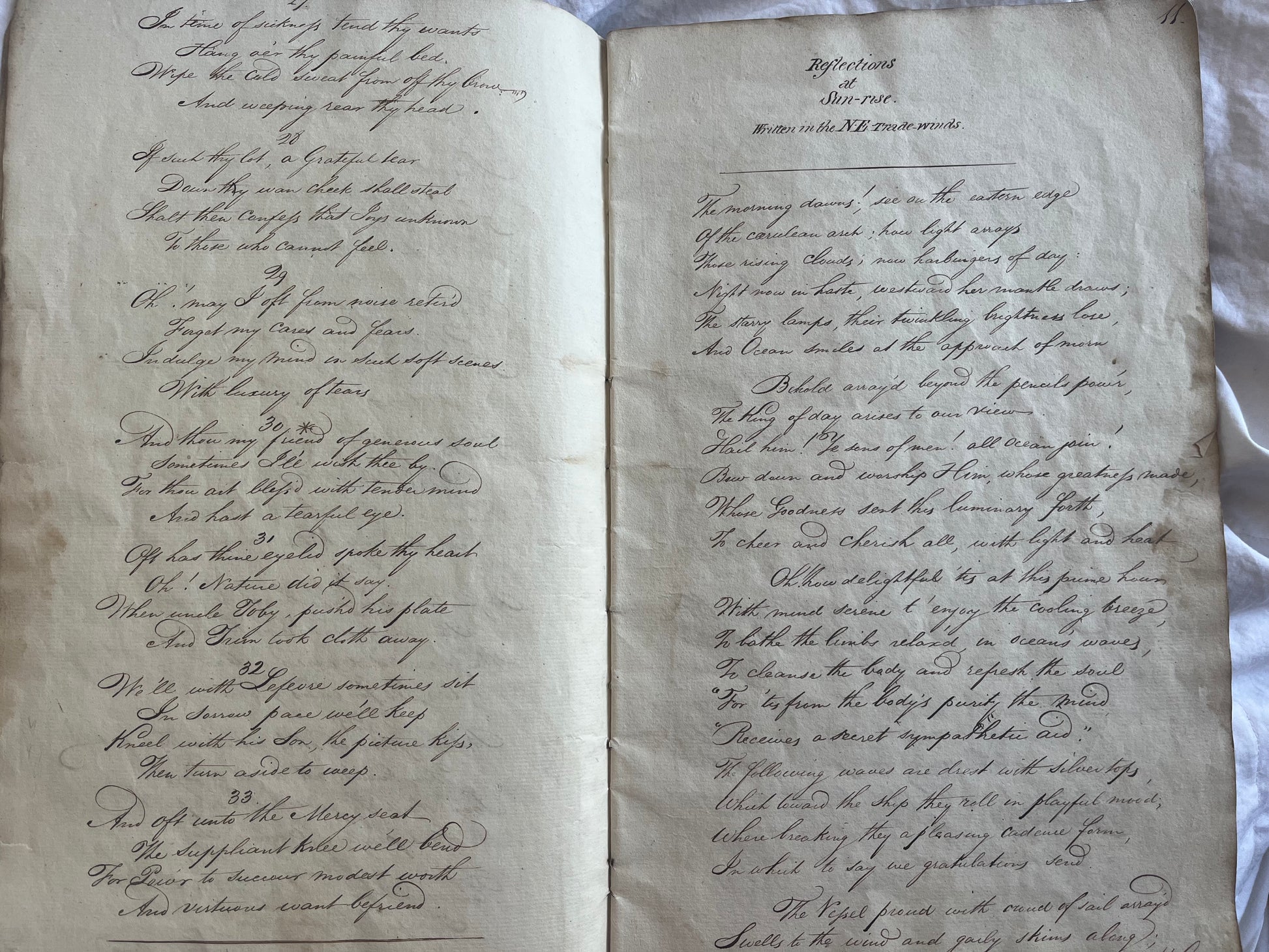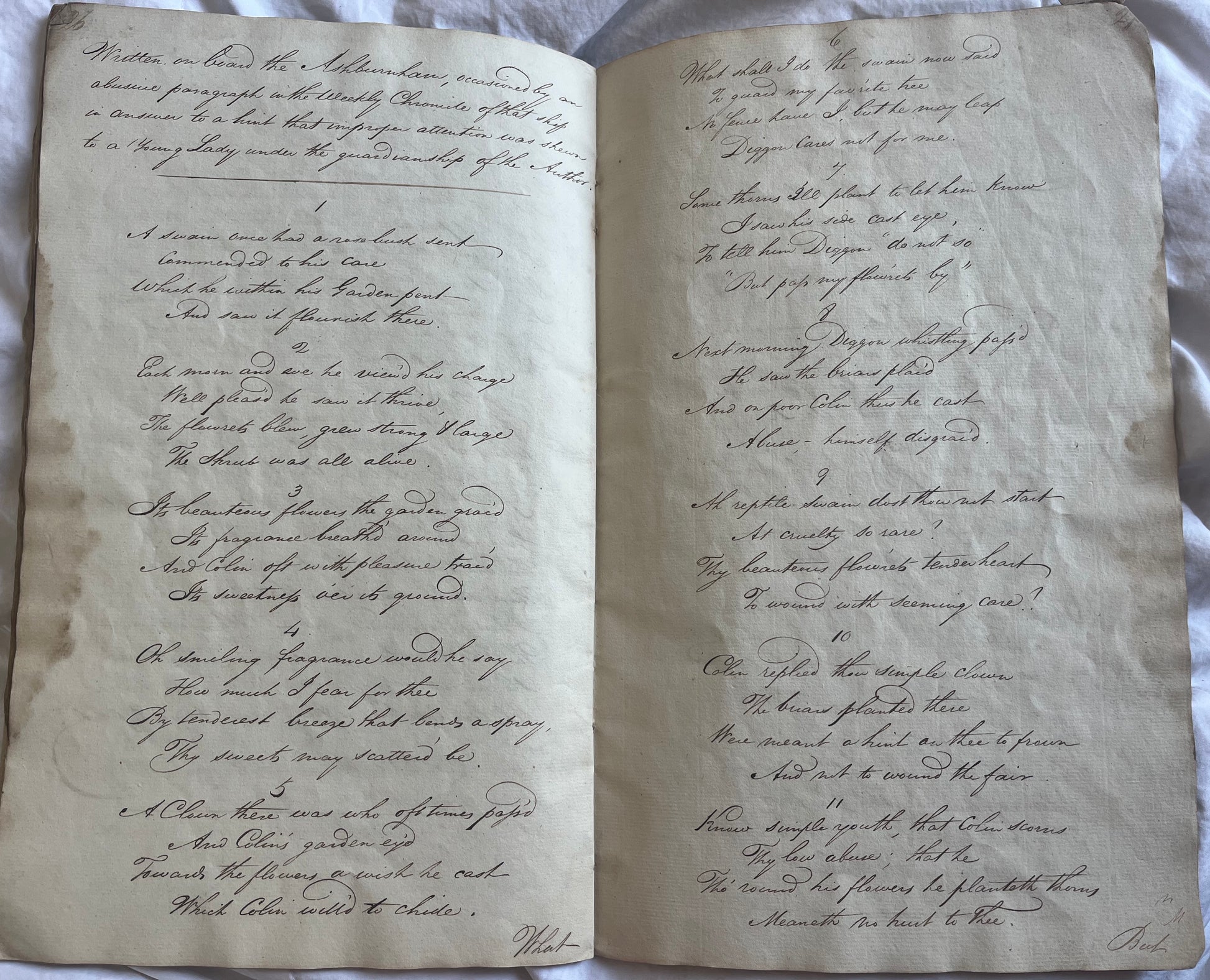 Early 19th Century Manuscript of unwritten poetry written by Sophia Ricketts, Grand Daughter of Captain Richard Pierce who died during the Halsewell Tragedy.