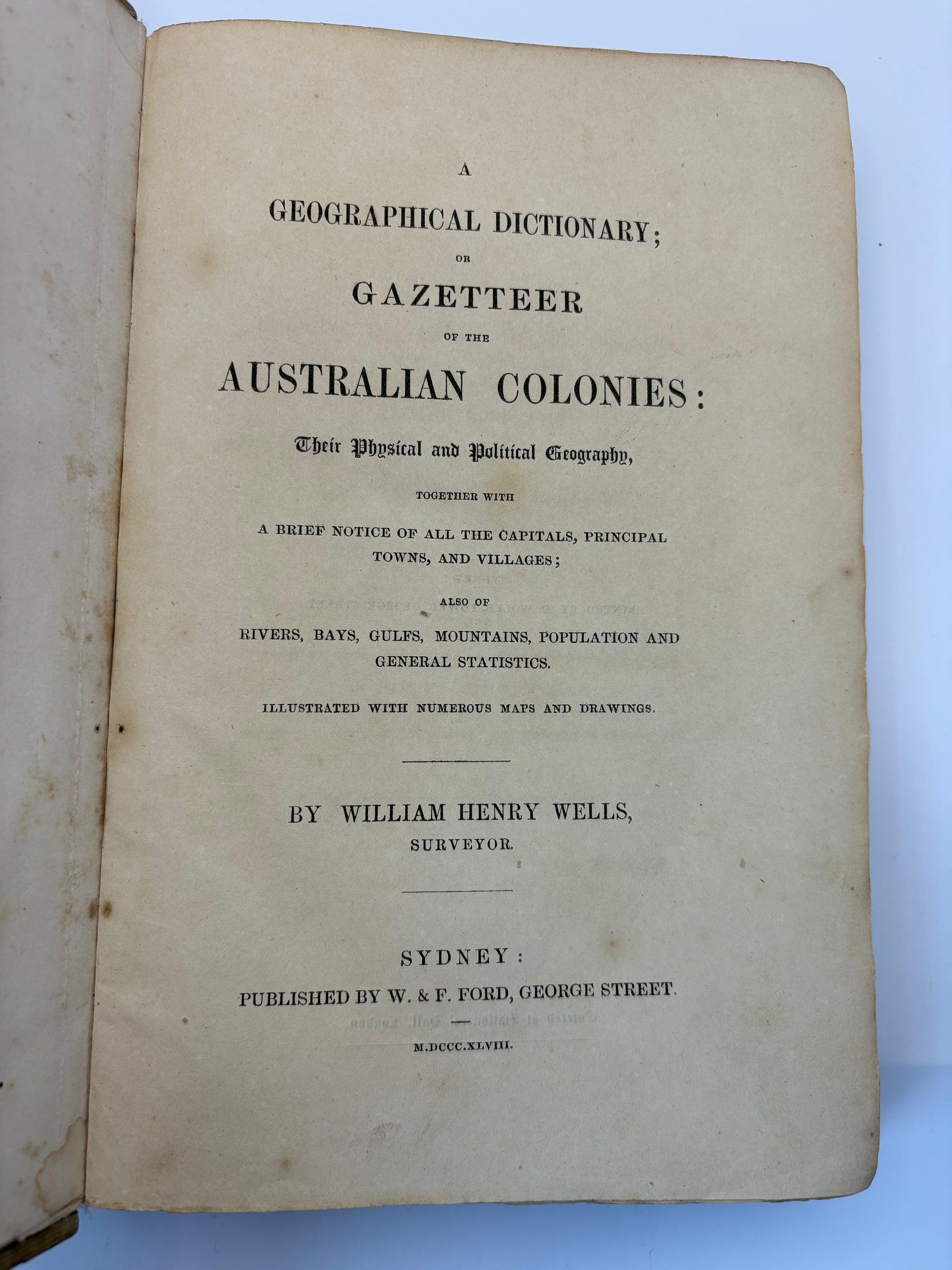 Uncut and In original Australian binding - "A Geographical Dictionary of the Australian Colonies" - Sydney 1848 - With locally printed map of Australia and early plates of Sydney