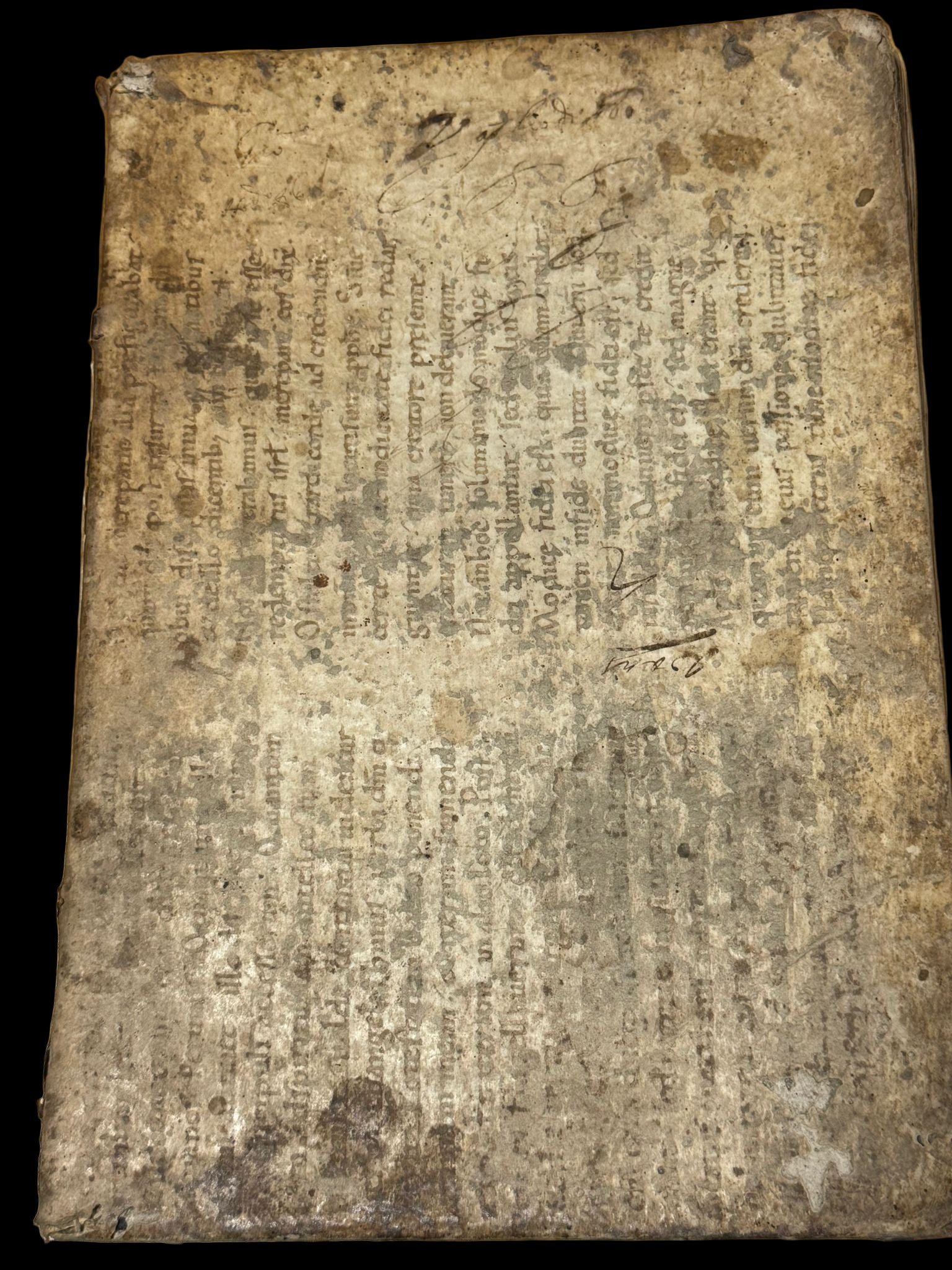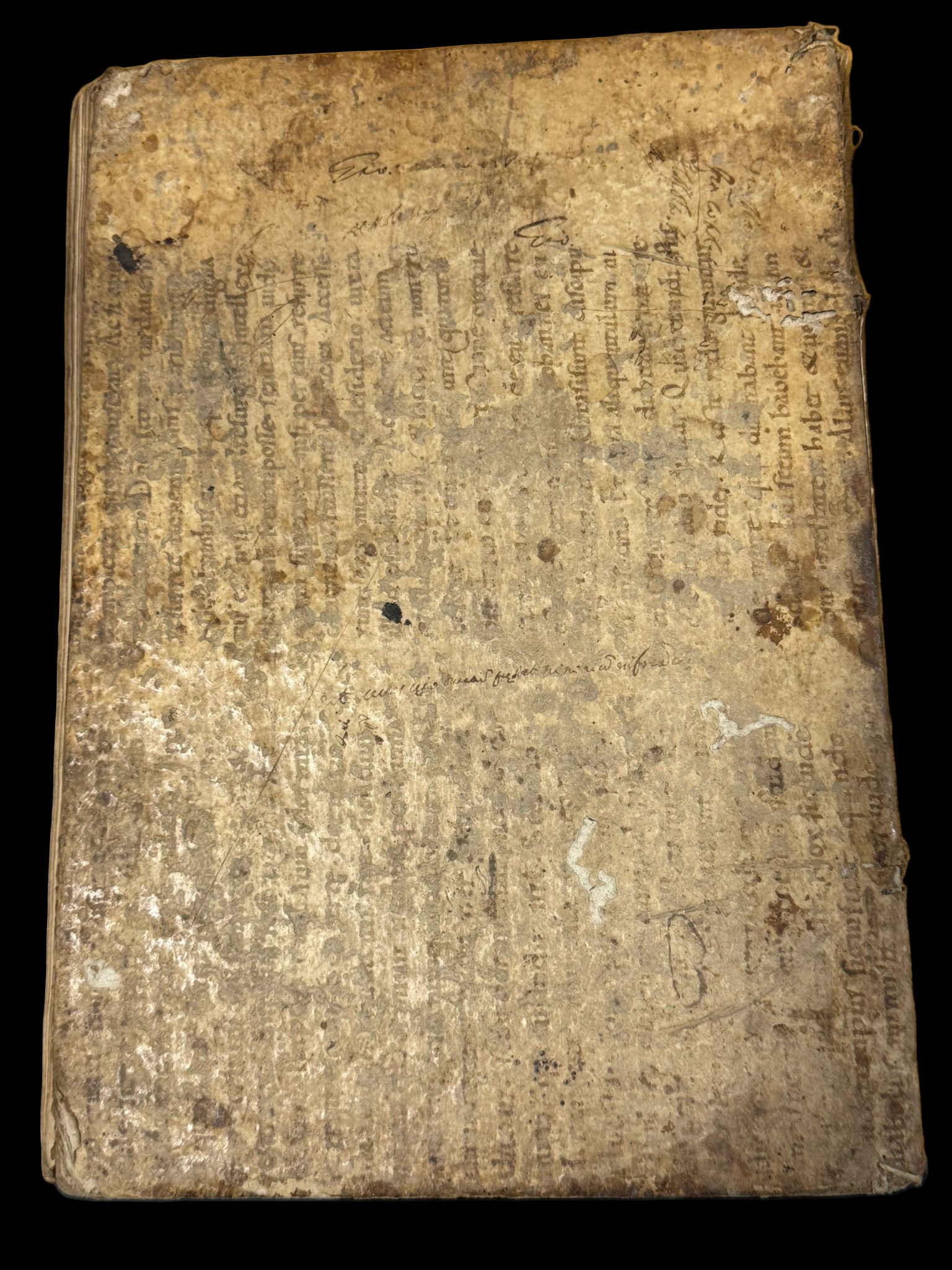 The external parchment binding the text is in a late Carolingian hand and is identified as Homily XX by Haimo (Haymo) of Auxerre. Haimo was a Benedictine monk who was based in France during the 9th century. Many of his works were previously erroneously attributed to Haymo of Halberstadt. It’s likely that the inner side of the parchment will also have text, likely in good condition.